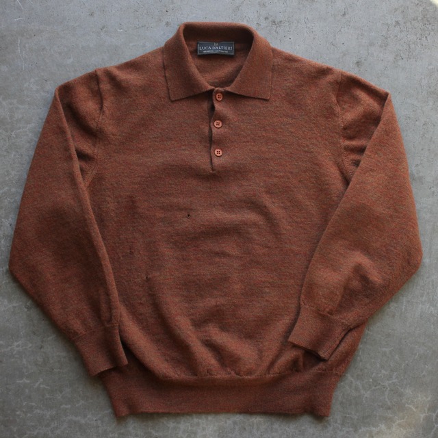 着丈58 肩幅40.5 身幅53.5 袖丈52.5 made in Italy エクストラファインメリノウール使用。 ブラウンをベースに、複数色の糸が混ざった表情豊かな色味 ボディに複数の小さなダメージがありますが、 ヴィンテージの雰囲気として楽しめる範囲のコンディション。 シャビーな質感と色味の良さが合わさり、シンプルながら存在感のある一着。