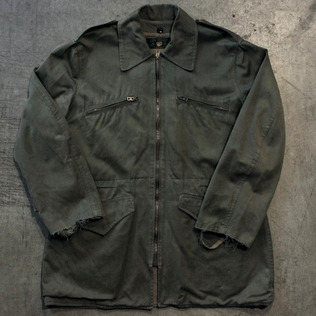 着丈76 肩幅47.5 身幅58 袖丈59 40年代ごろのフランスによるスキージャケットです。 ミリタリーを彷彿とさせるデザインですがジッパーとボタンの使い分けや襟元のデザインの効いた丸みであったりと、ディテールに注目すると「らしさ」のようなものを感じ取ることができますね。 もちもちなコットン生地にライナーがついてるので暖かいです。 ウッドボタンもついており非常に雰囲気のある1着となっております