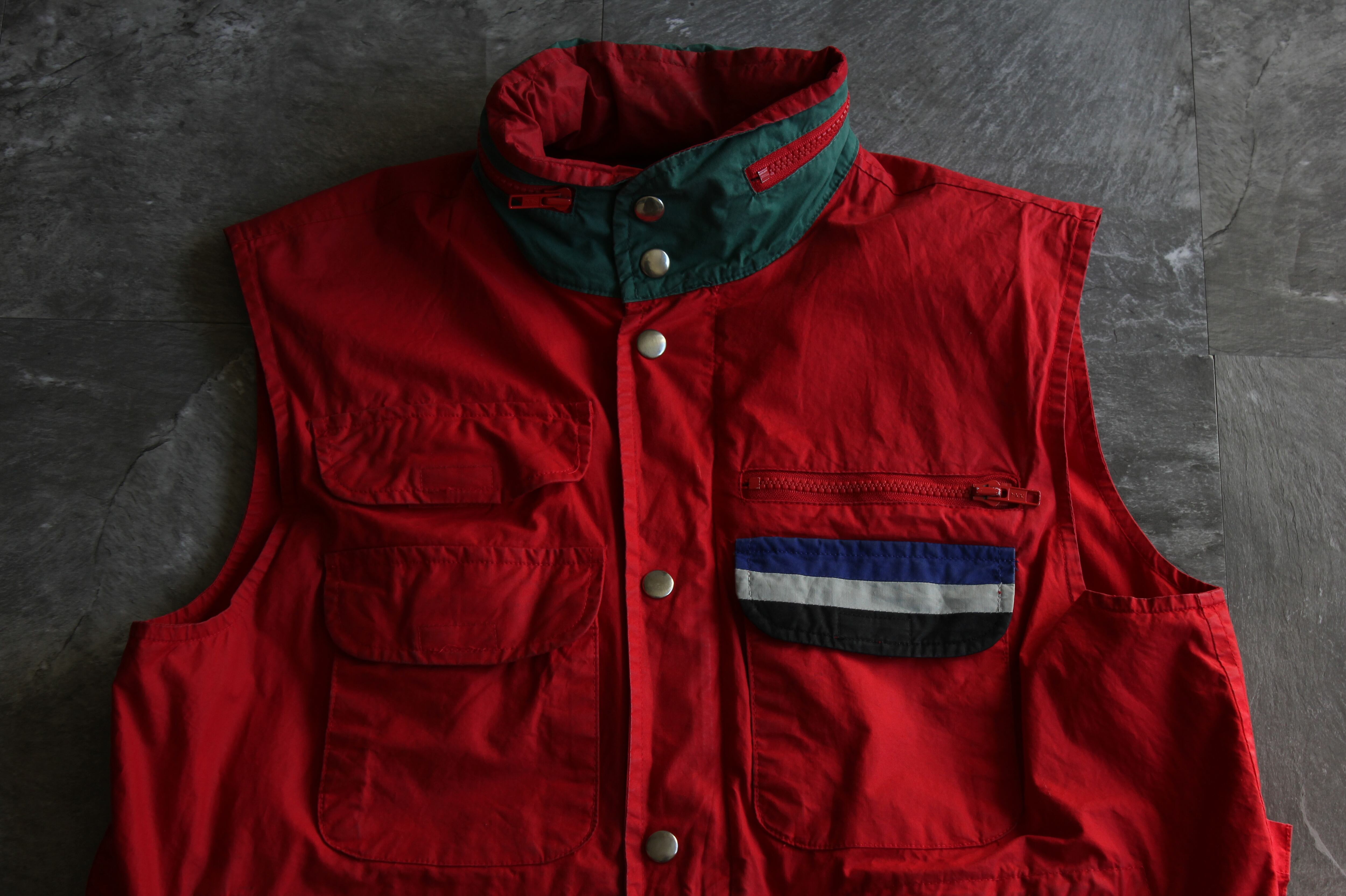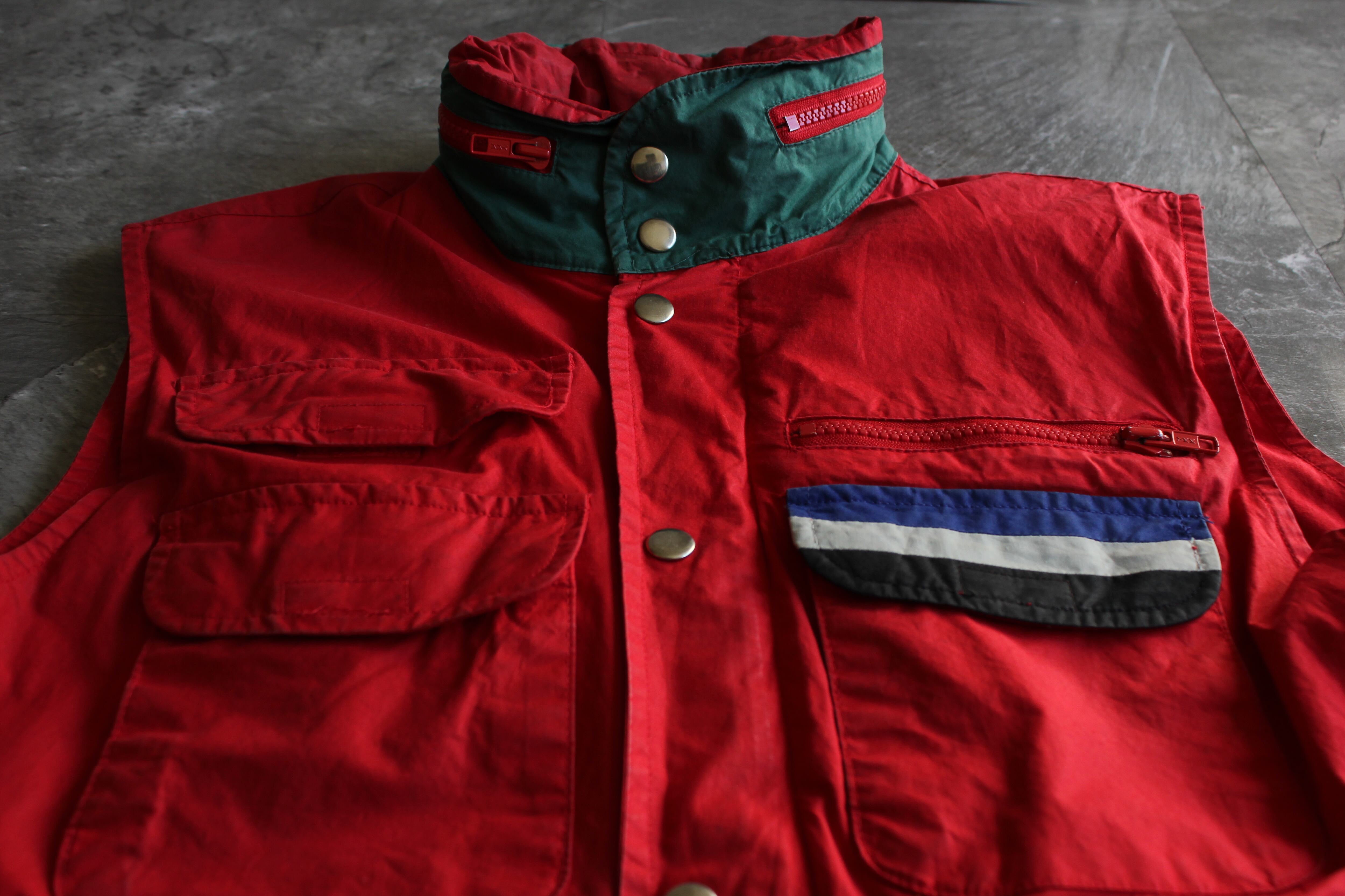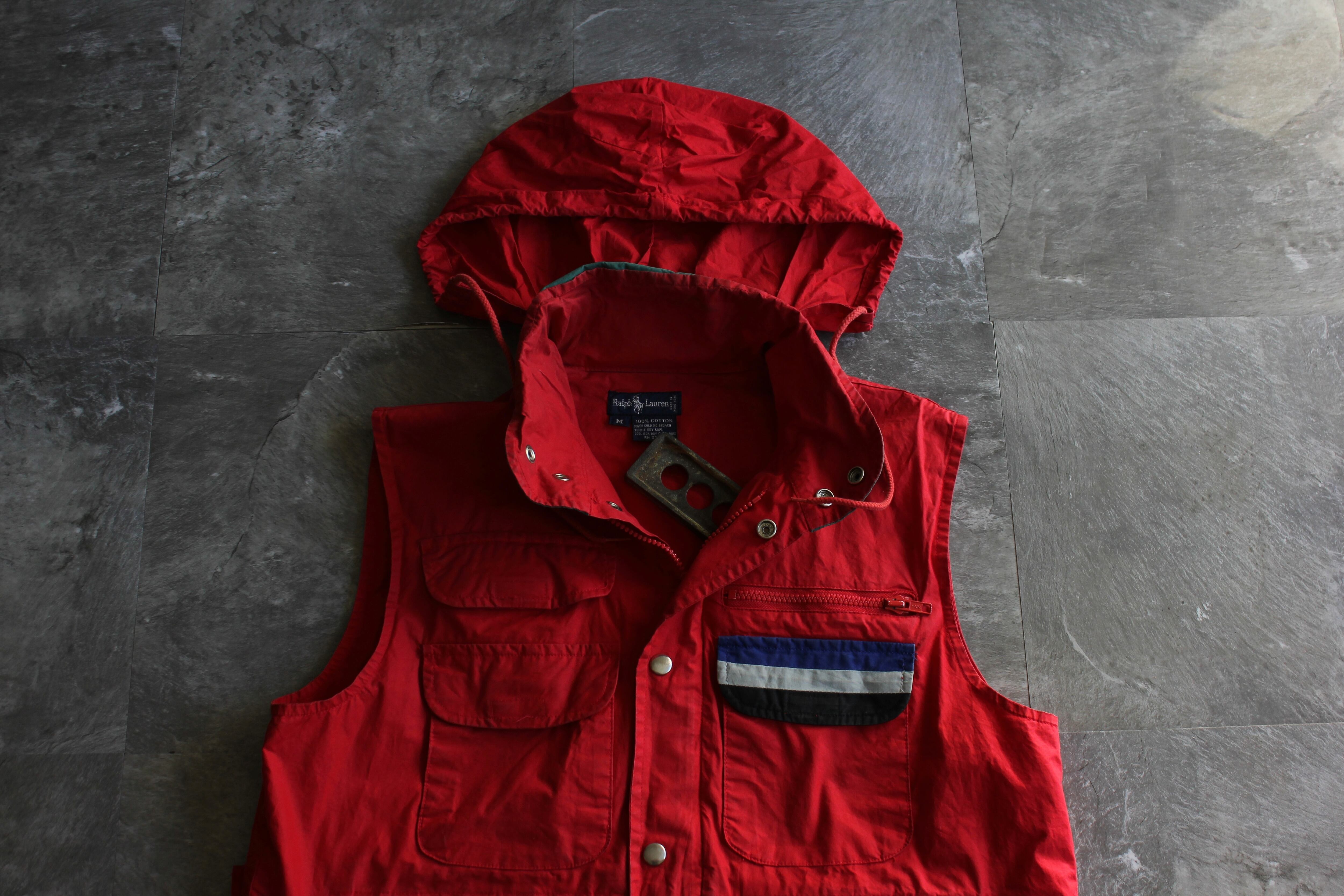 フードも収納されており機能性も充分な一枚、発色の良い赤、コーデに万能な対応をしてくれそうですね