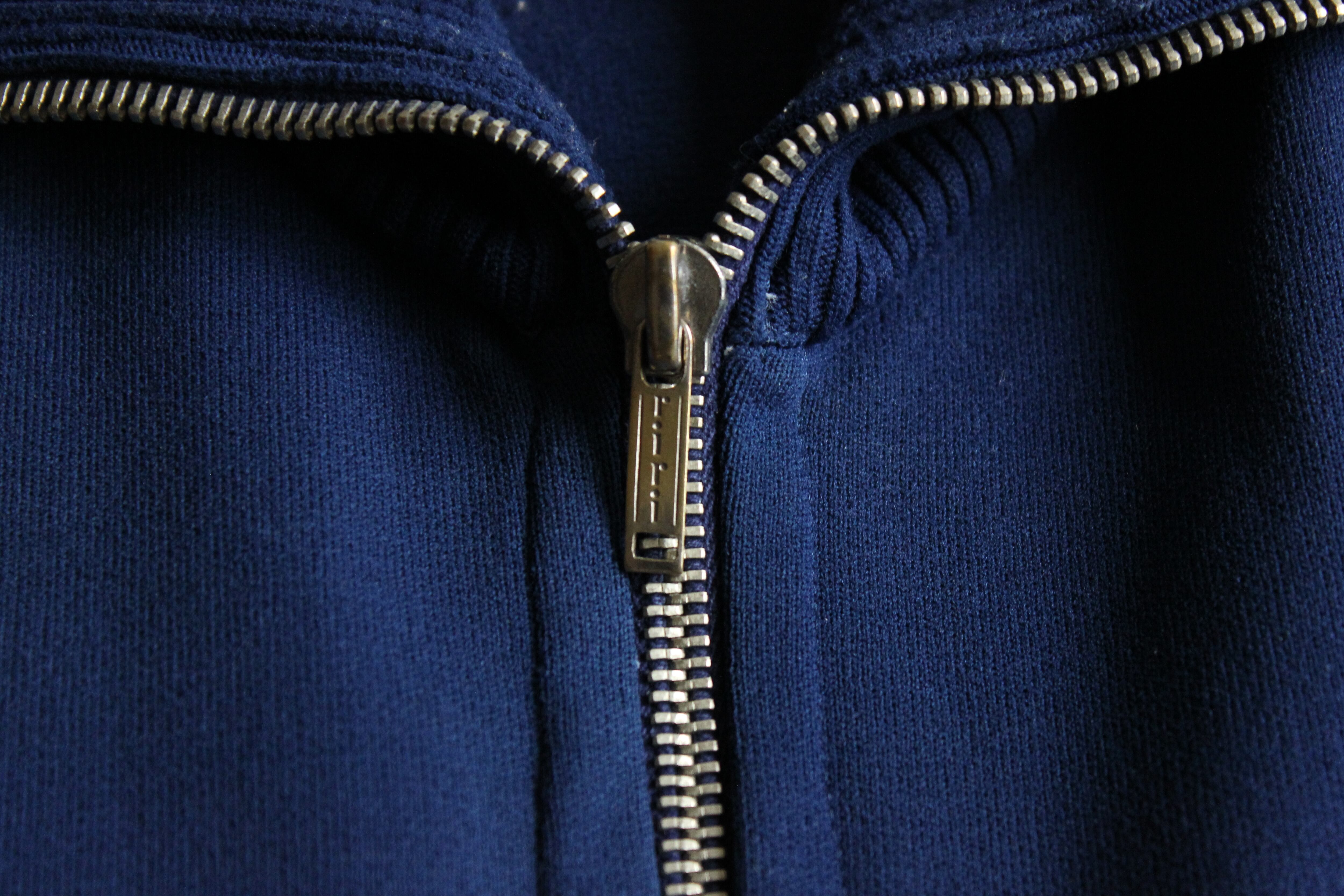 60年代頃のヘランカガーン使用のトラックジャケットです。ヘランカとはheberleinというスイスの会社が開発した合成糸を指します。ナイロンをベースに作られており、独特の光沢感や伸縮性や耐久性が特徴的です。