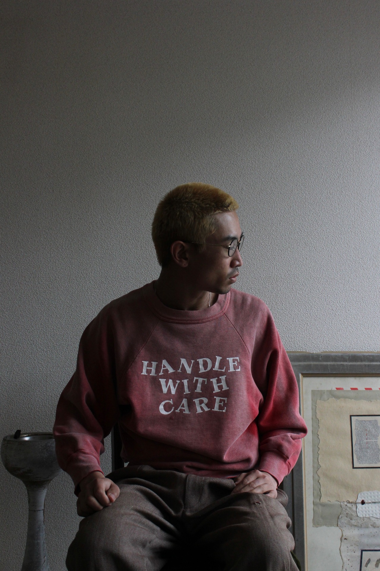 handle with care (取扱注意)とプリントされています。面白いです。フォントも良いです。