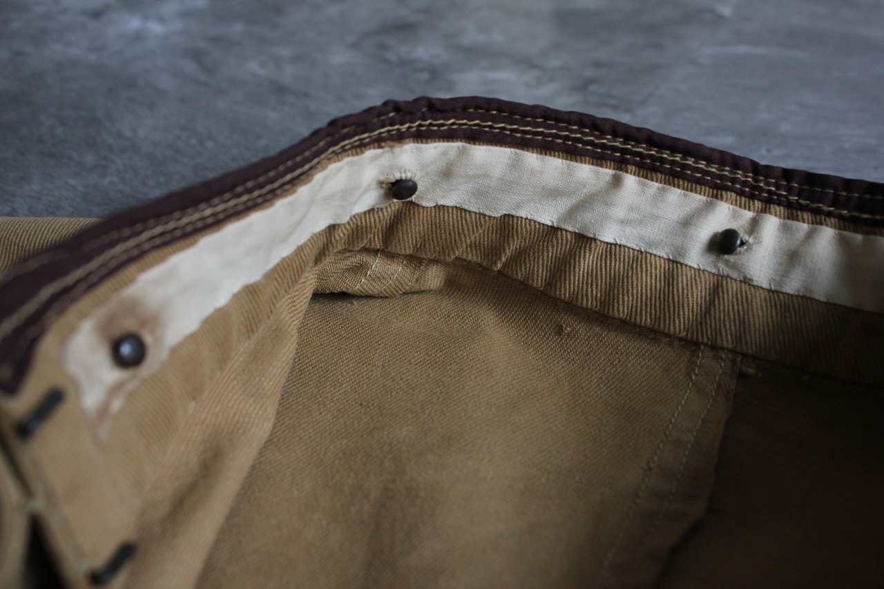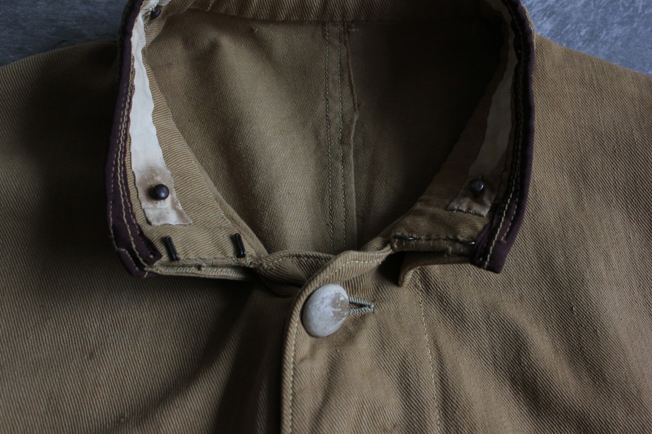 襟裏に配された5つのスタッズは、当時の着脱式チンガードや装備連結用と思われるディテール。