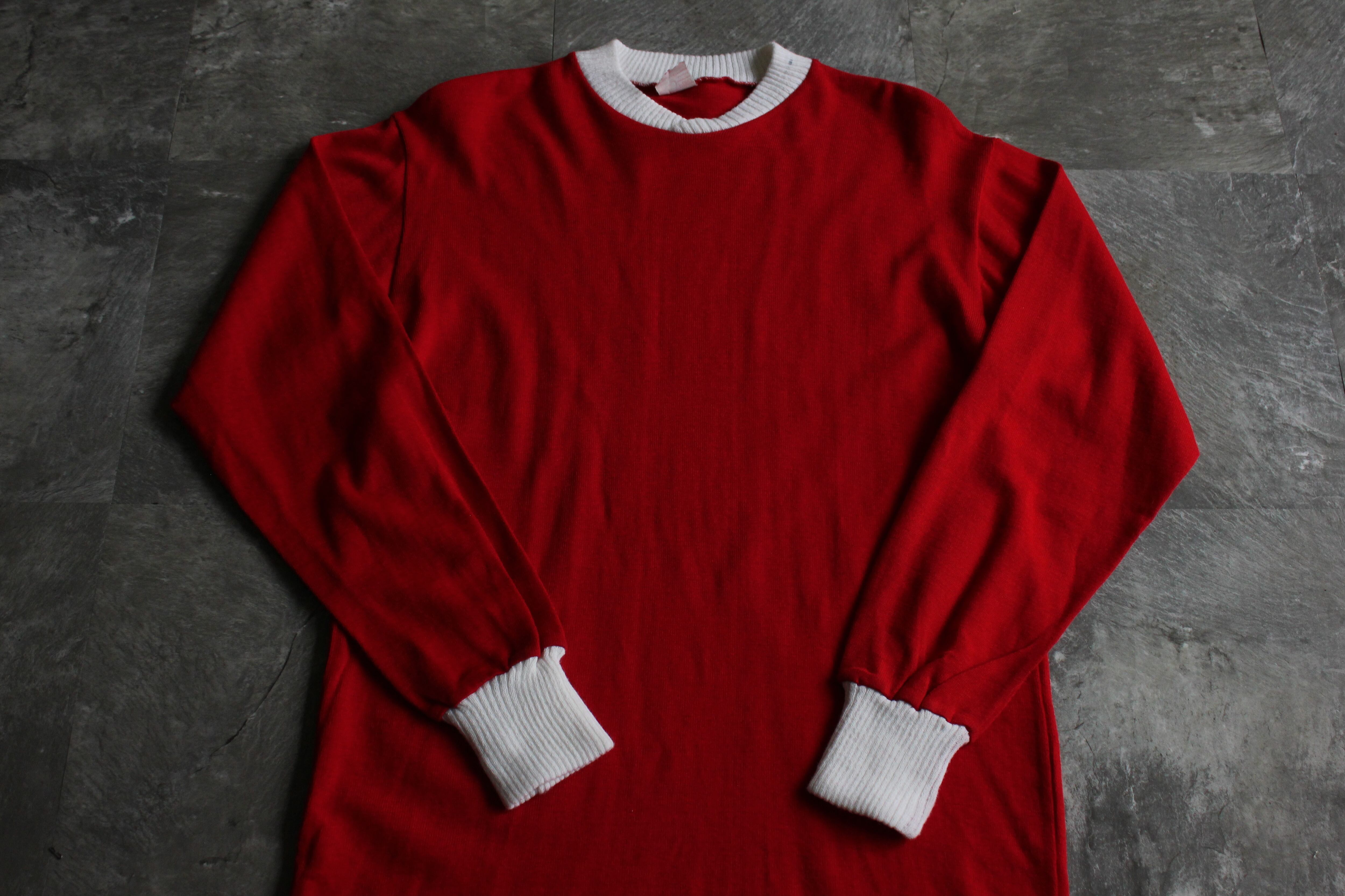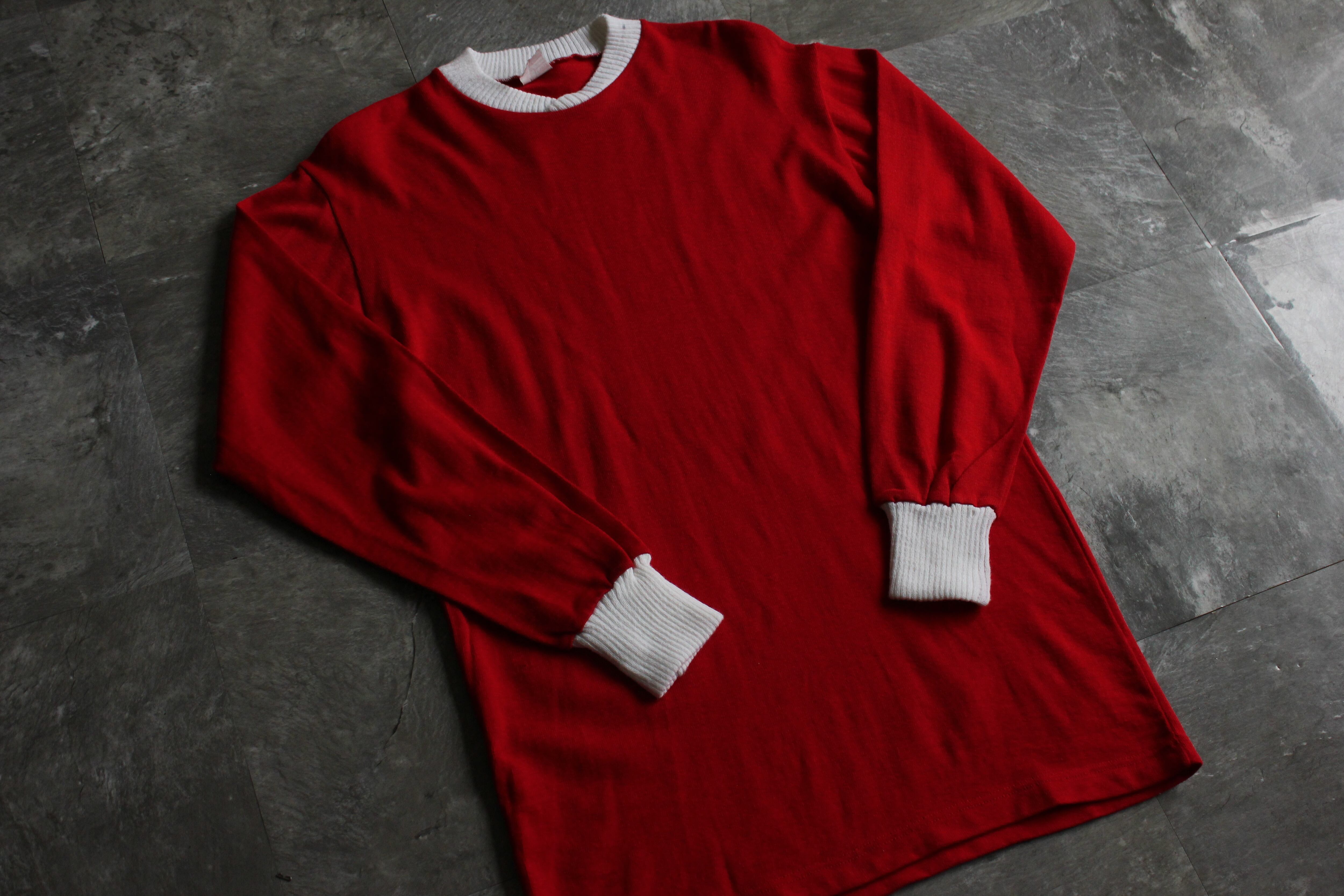 鮮やかな赤、白のリブライン、そしてサイズ5という表記が、時代と国を感じさせてくれる一着。