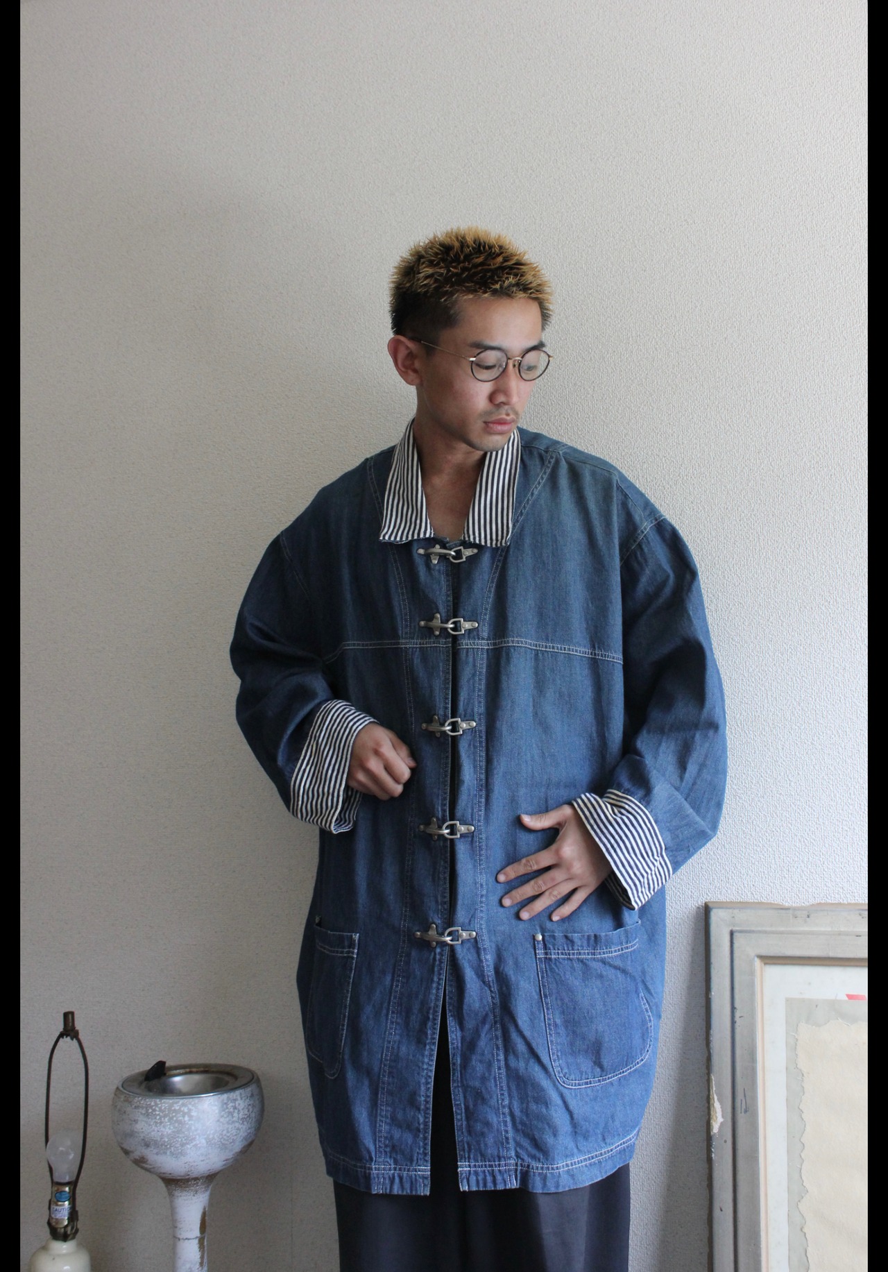 襟元と袖先がボーダーになっていたり、ボタンとしてはファイヤーマンフックが採用されております。ありそうでない珍しい発想。