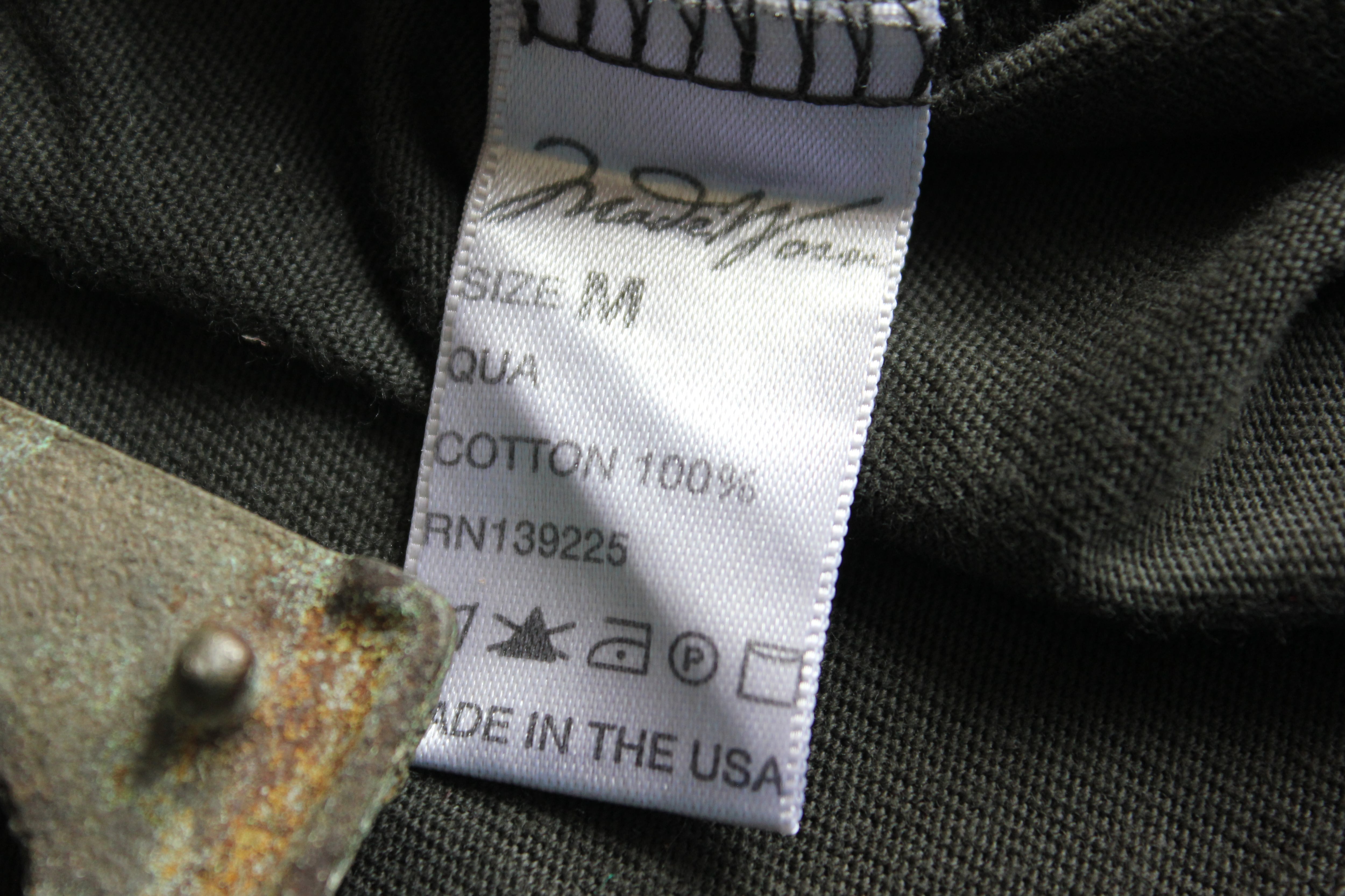 100%コットンのアメリカ製で、Madewornらしいリアルな加工と自然なフェード、ダメージホールが施されています。プリントやステッチのディテールまでこだわり抜かれた一品です。