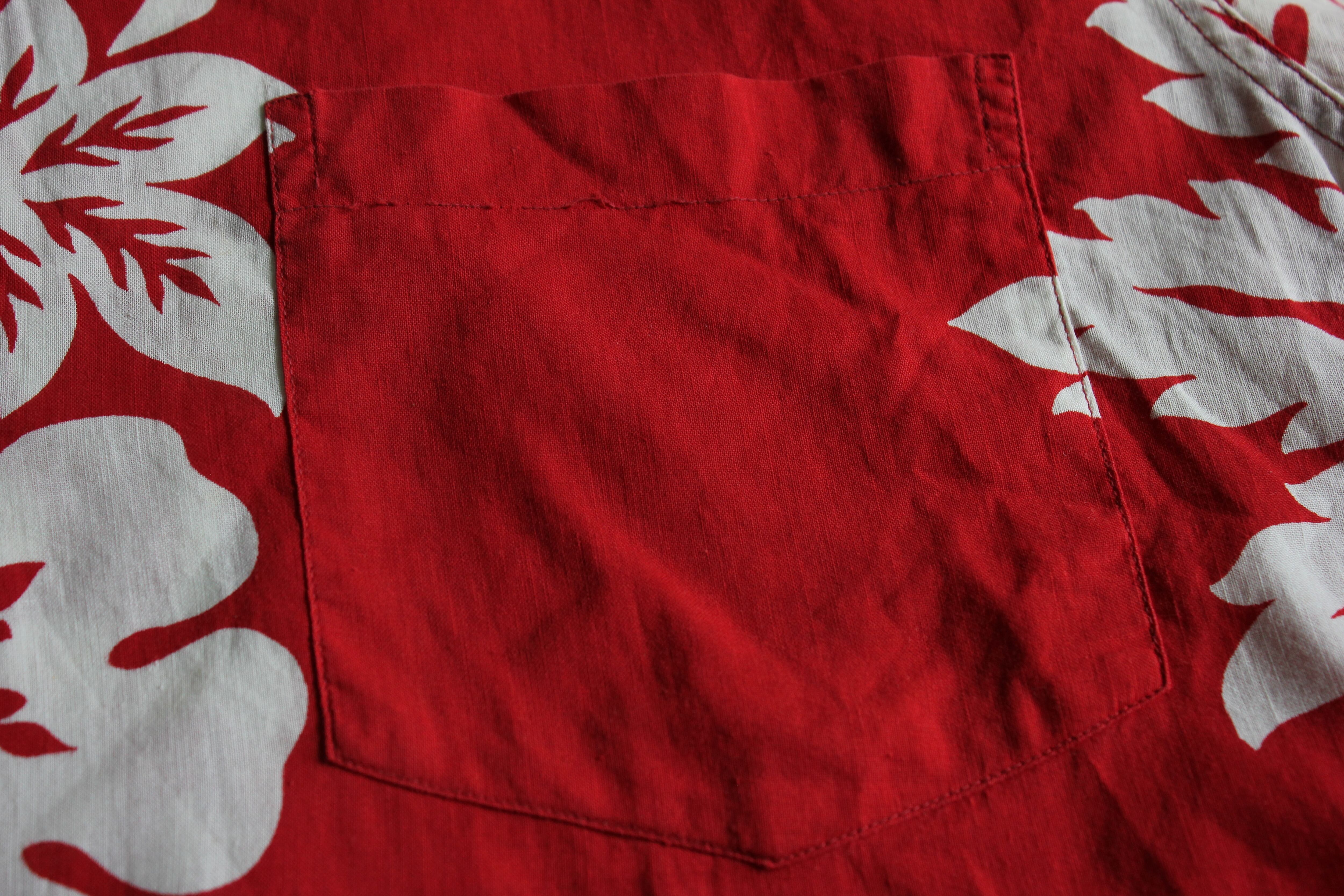 #vintagealoha #40sAloha #LeilaniGiftShop #アロハシャツ #ウッドボタン #ホノルル製 #ビンテージ古着 #レーヨンシャツ #赤シャツ #ヴィンテージアロハ