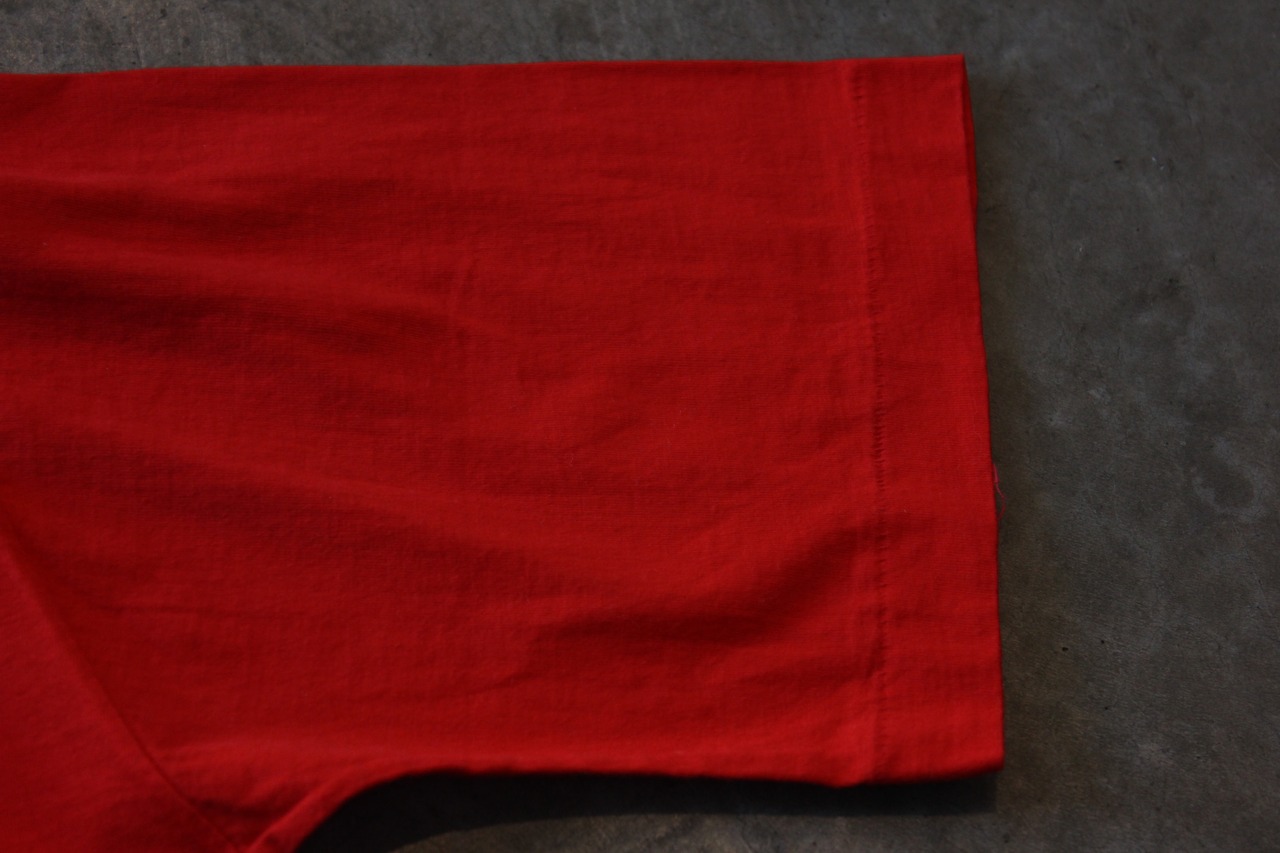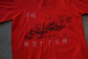 万里の長城を描いた線画に、I CLIMBED THE GREAT WALL 我登上了長城(私は長城に登った)のメッセージが入った1枚。全体のグラフィックバランスと赤×黒の配色が今っぽく、POPEYEやシティボーイスタイルの文脈にも通じるデザイン。
