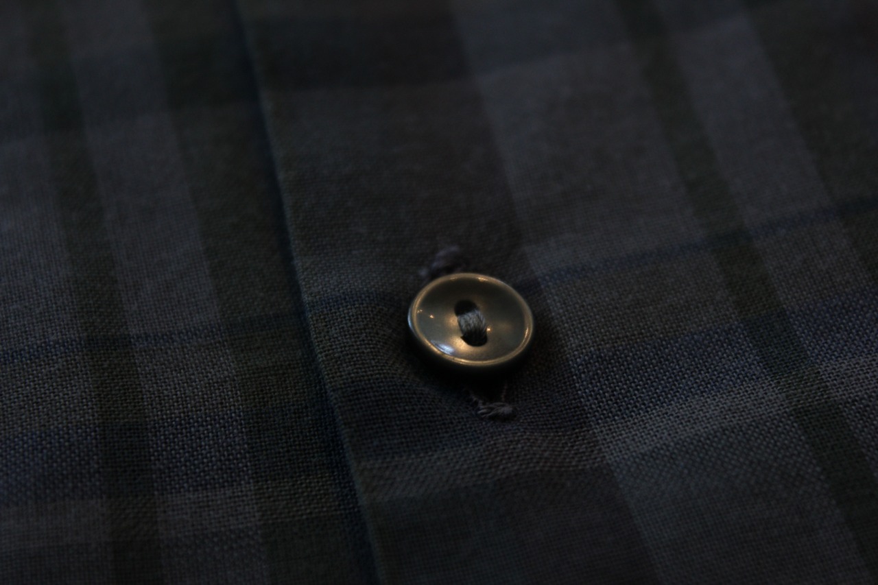 ブラックウォッチ風の落ち着いたチェック柄が魅力で、生地は当時の高級ファブリックメーカーGaley & Lord製。適度なハリと艶を持ち、上品な仕上がり。ワーク寄りのルーツを持ちながらも、街着として洗練された存在感を放つ1枚。
