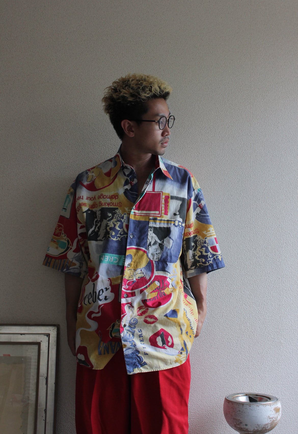 90年代イタリアのハイブランド、ICEBERGによるアート性あふれる総柄シャツ。