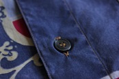 リップマーク、映画俳優、マッチ、シガレット、ライオン、エンブレムなど多彩なモチーフがコラージュされ、アングラ感とICEBERGらしいグラフィックの暴力性が同居した唯一無二の一着