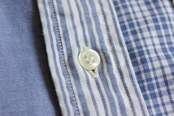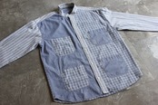 ギンガムチェック、ストライプ、シャンブレーを組み合わせたパッチワークデザイン。ロンドンらしい一枚です。