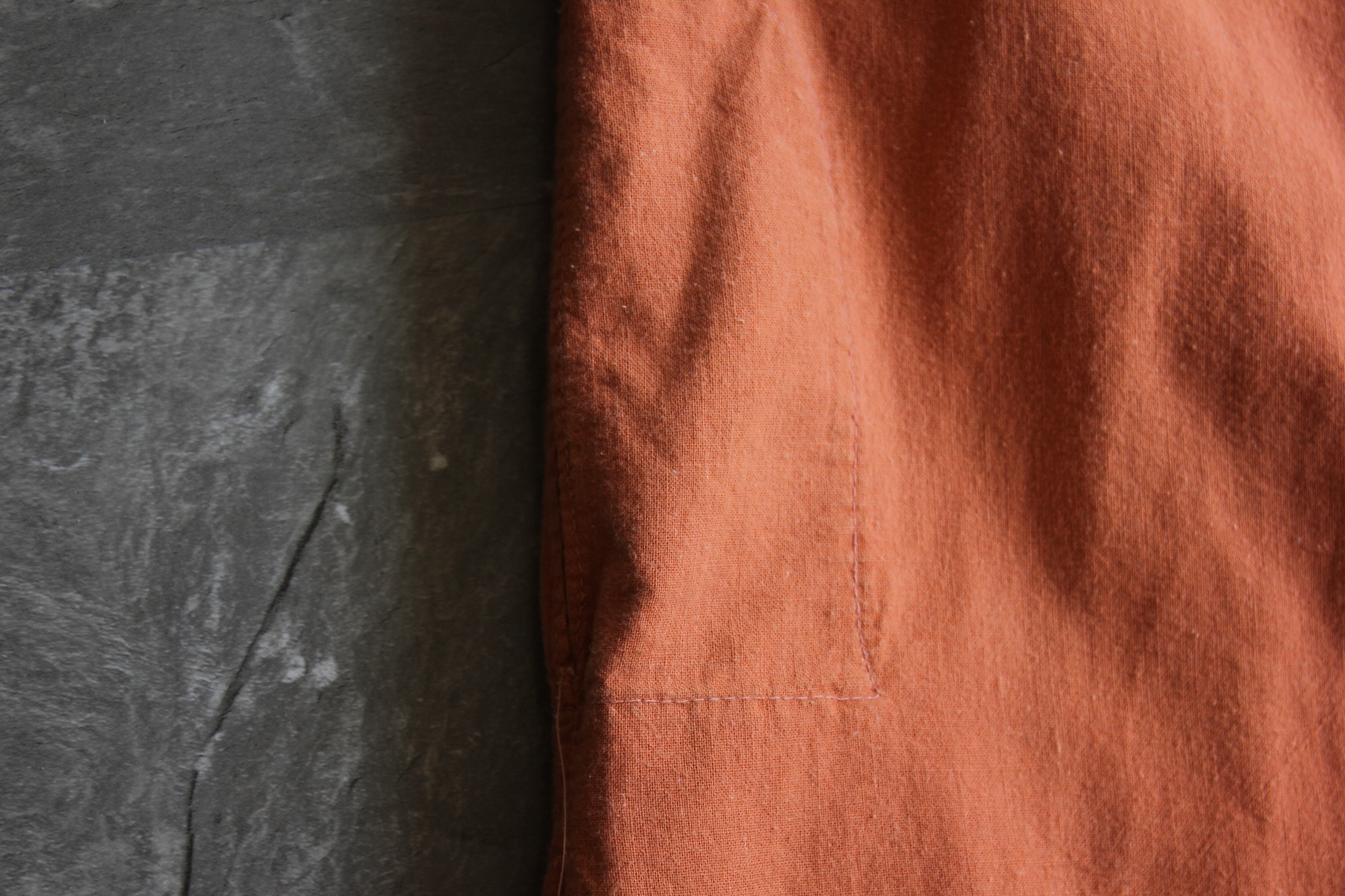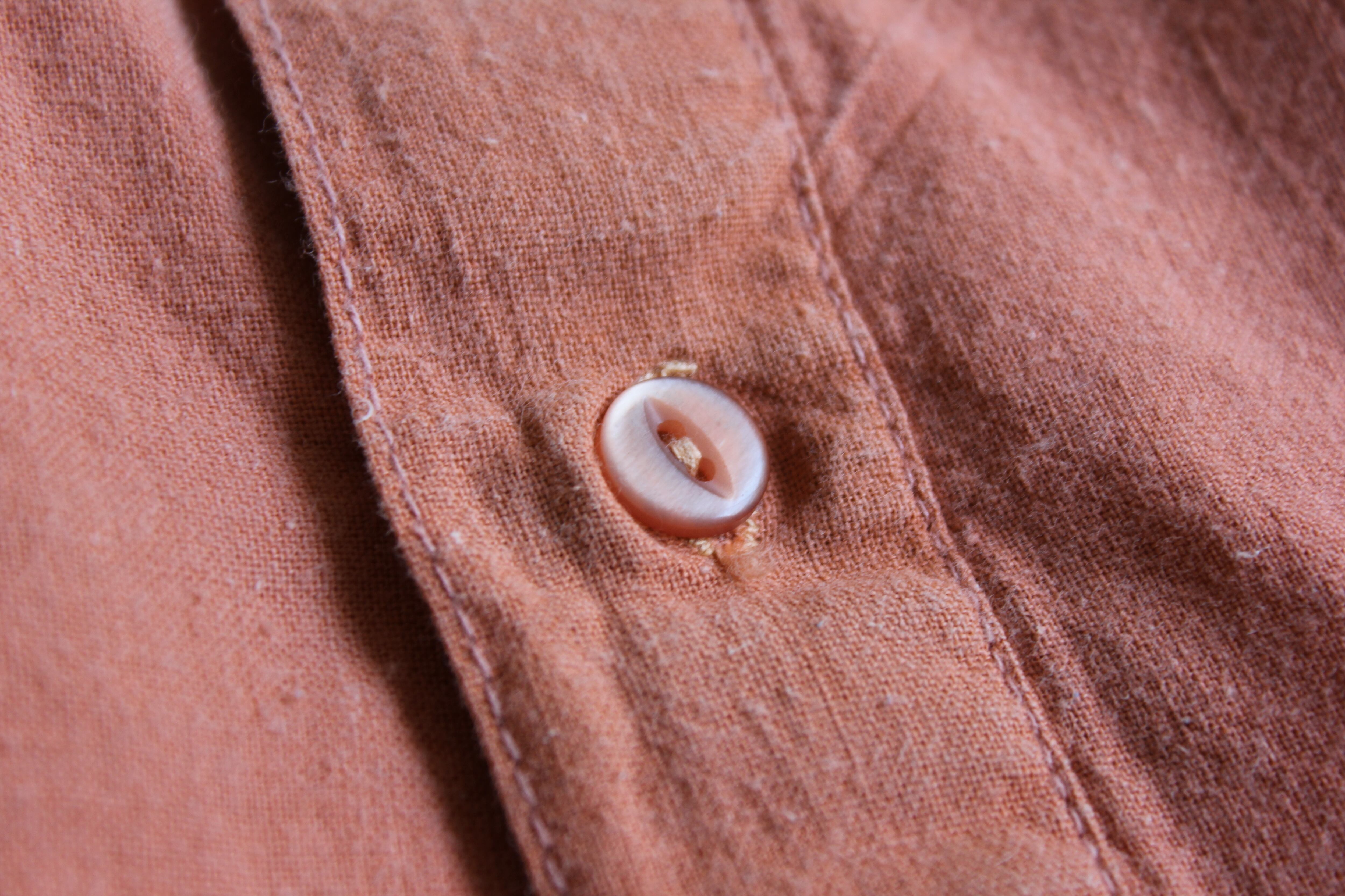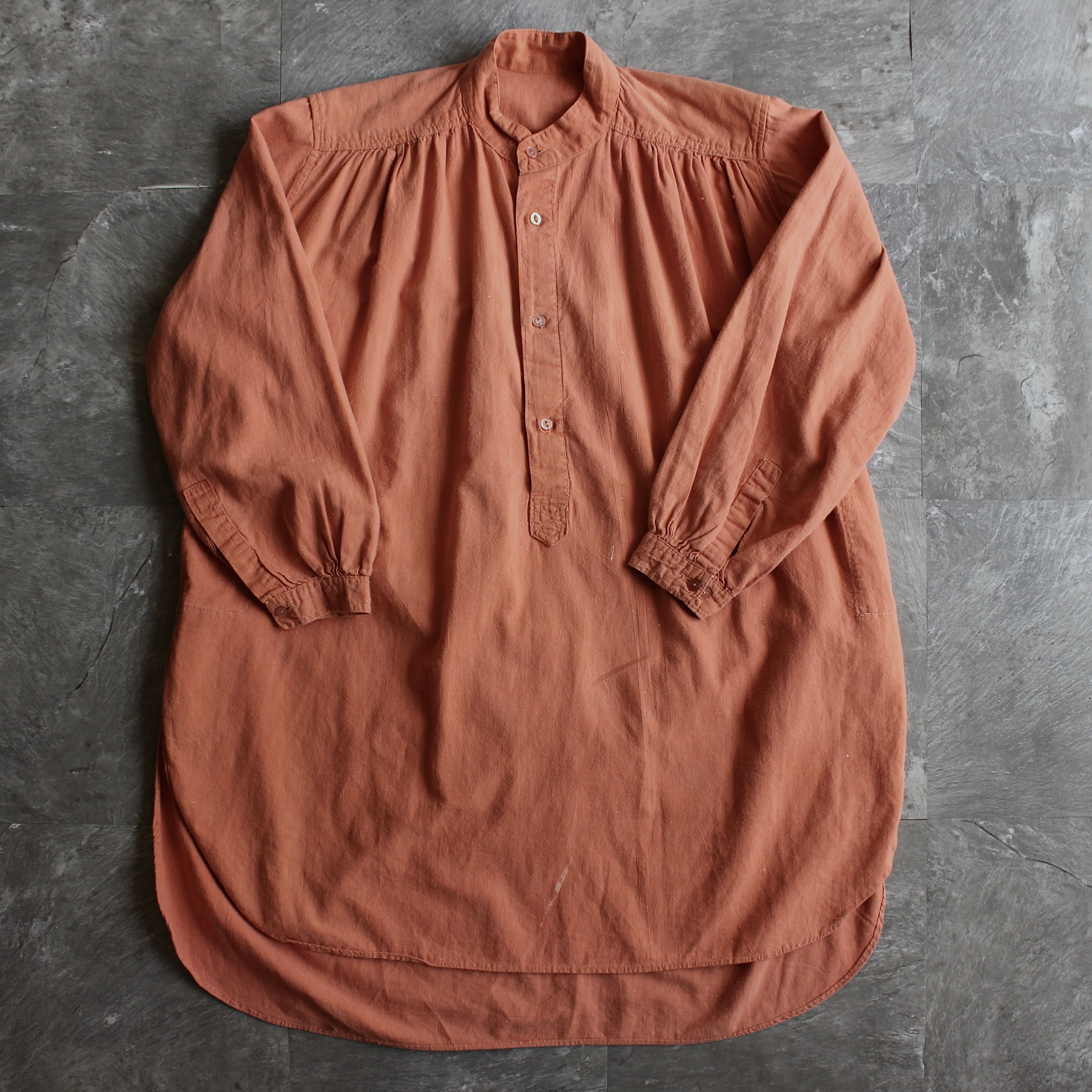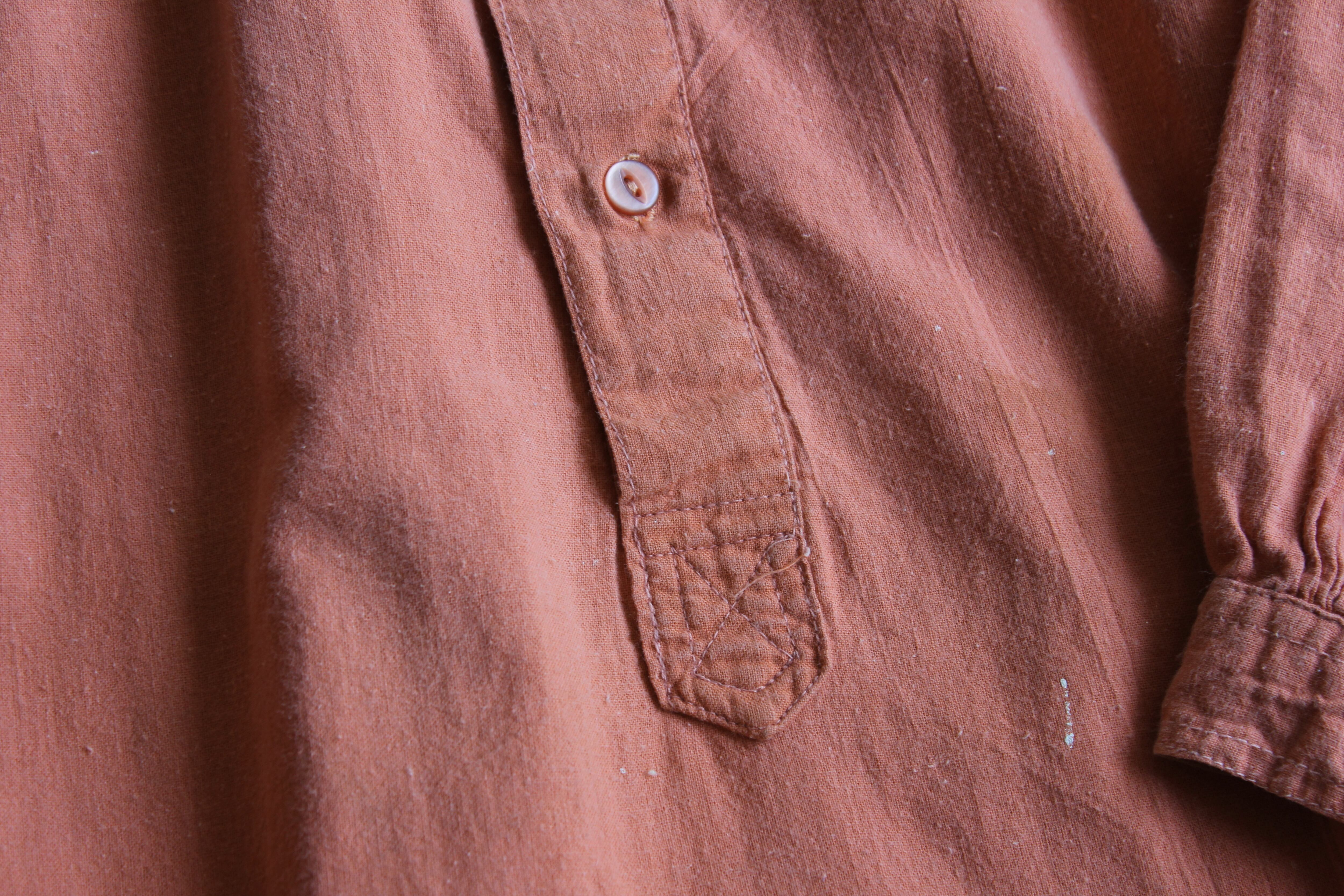 テラコッタカラーと、柔らかく風合いの増したコットン素材が特徴。細かなギャザーがクラシカルな雰囲気を引き立てています。