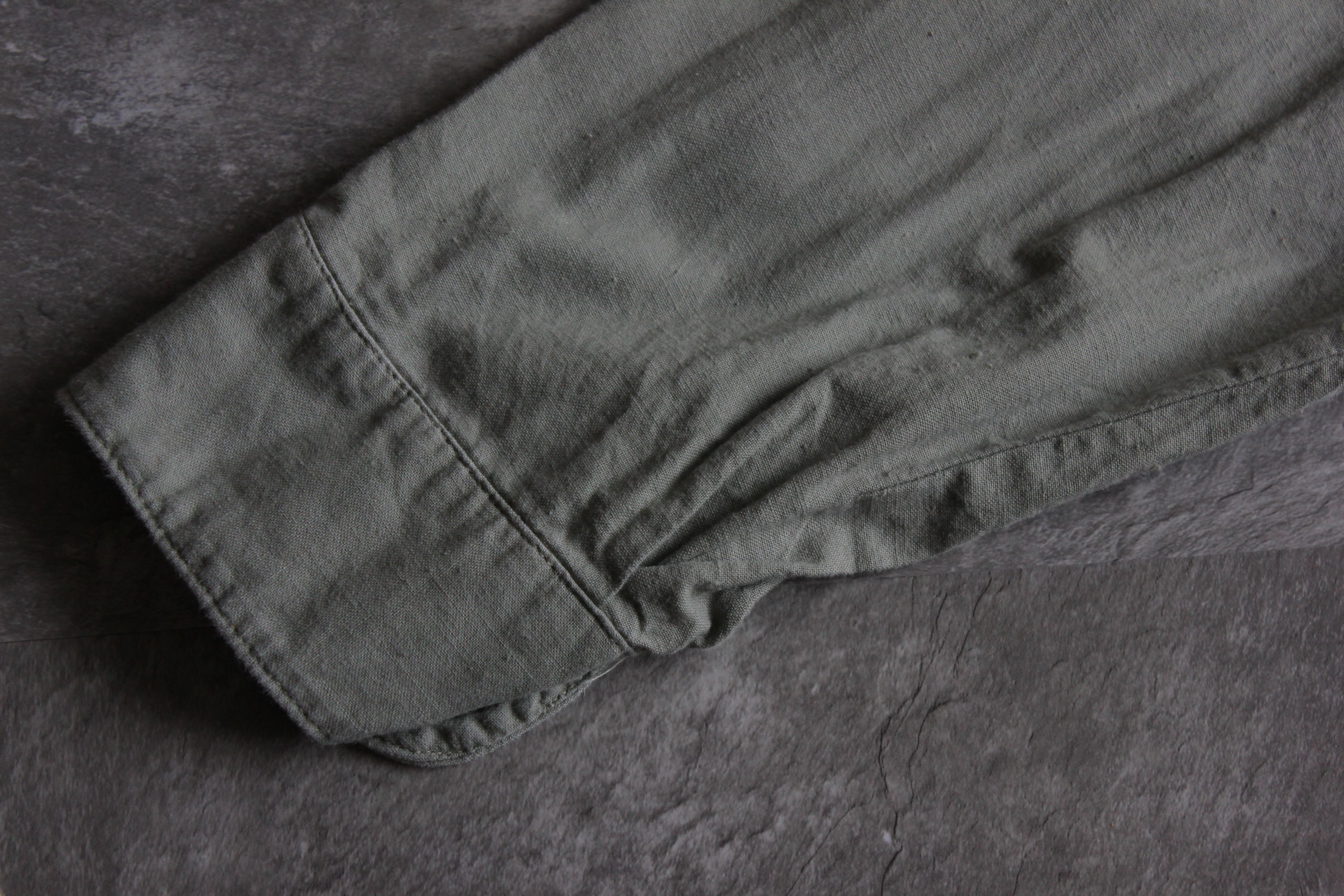 乾いた質感のコットン生地で、軍の寝巻き用ながら街着にも馴染みます。
