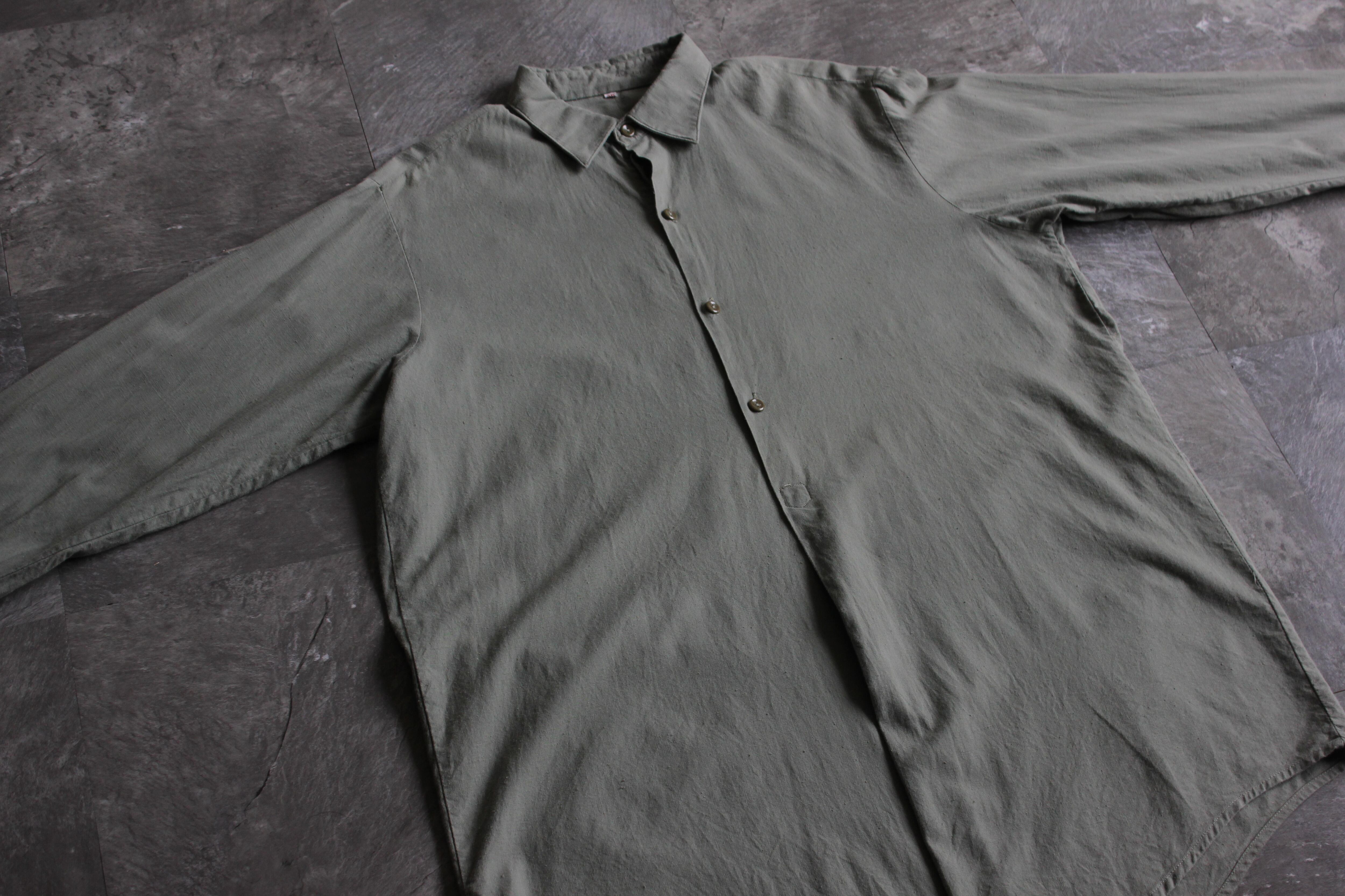 プルオーバー仕様にシャープな襟、2ホールボタンとシンプルなディテール。