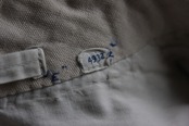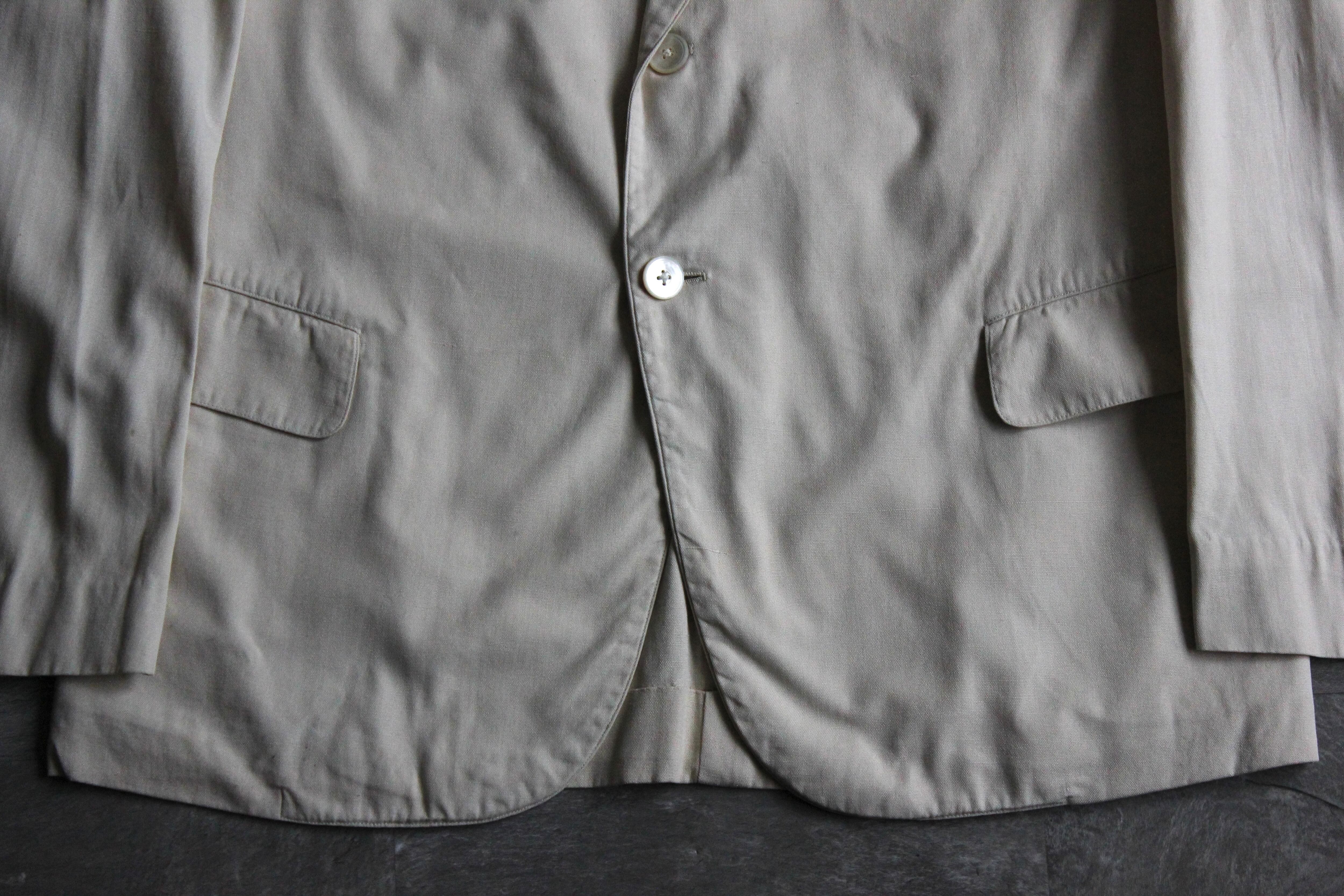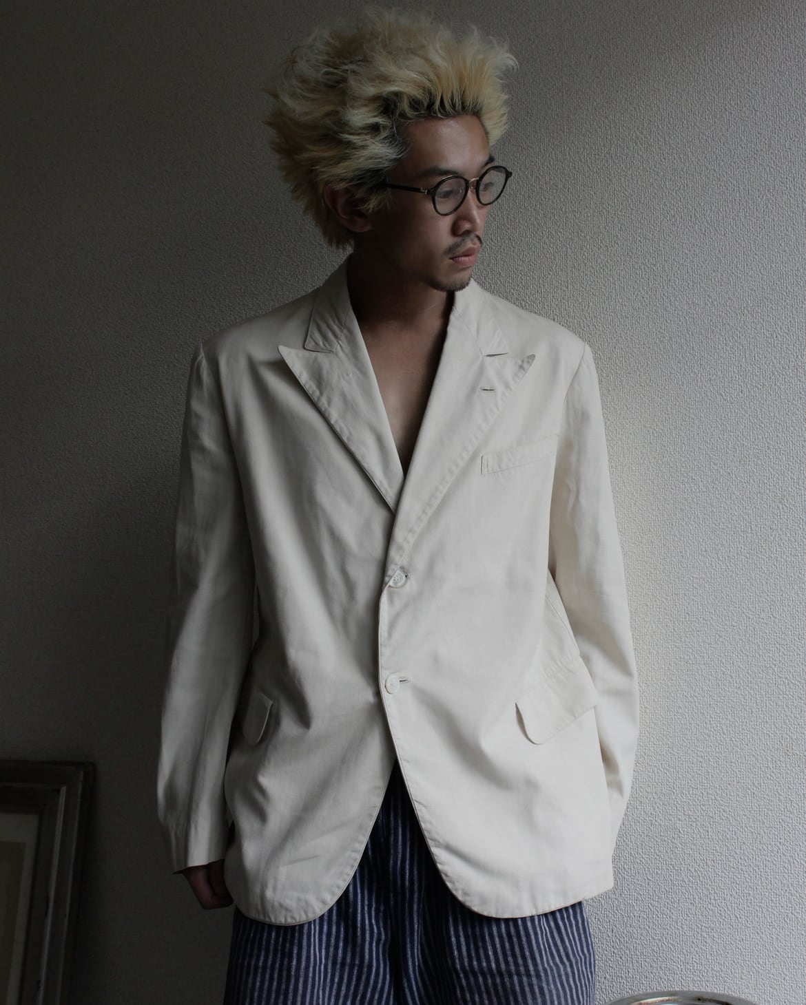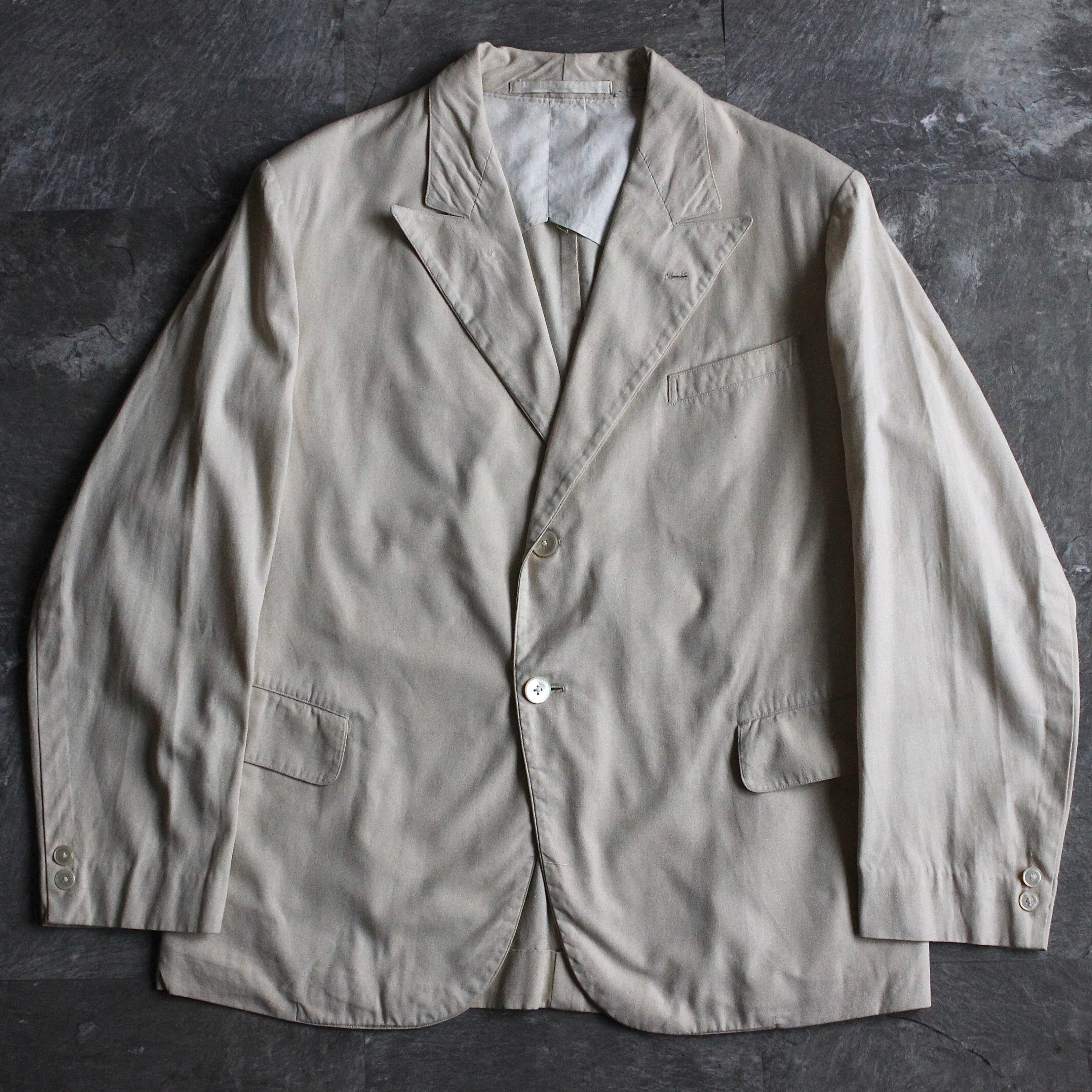 生地は生成りがかったベージュのコットンキャンバス。ワークの無骨さとテーラードの上品さを併せ持つ質感で、現代のスタイリングにも落とし込みやすいかと。