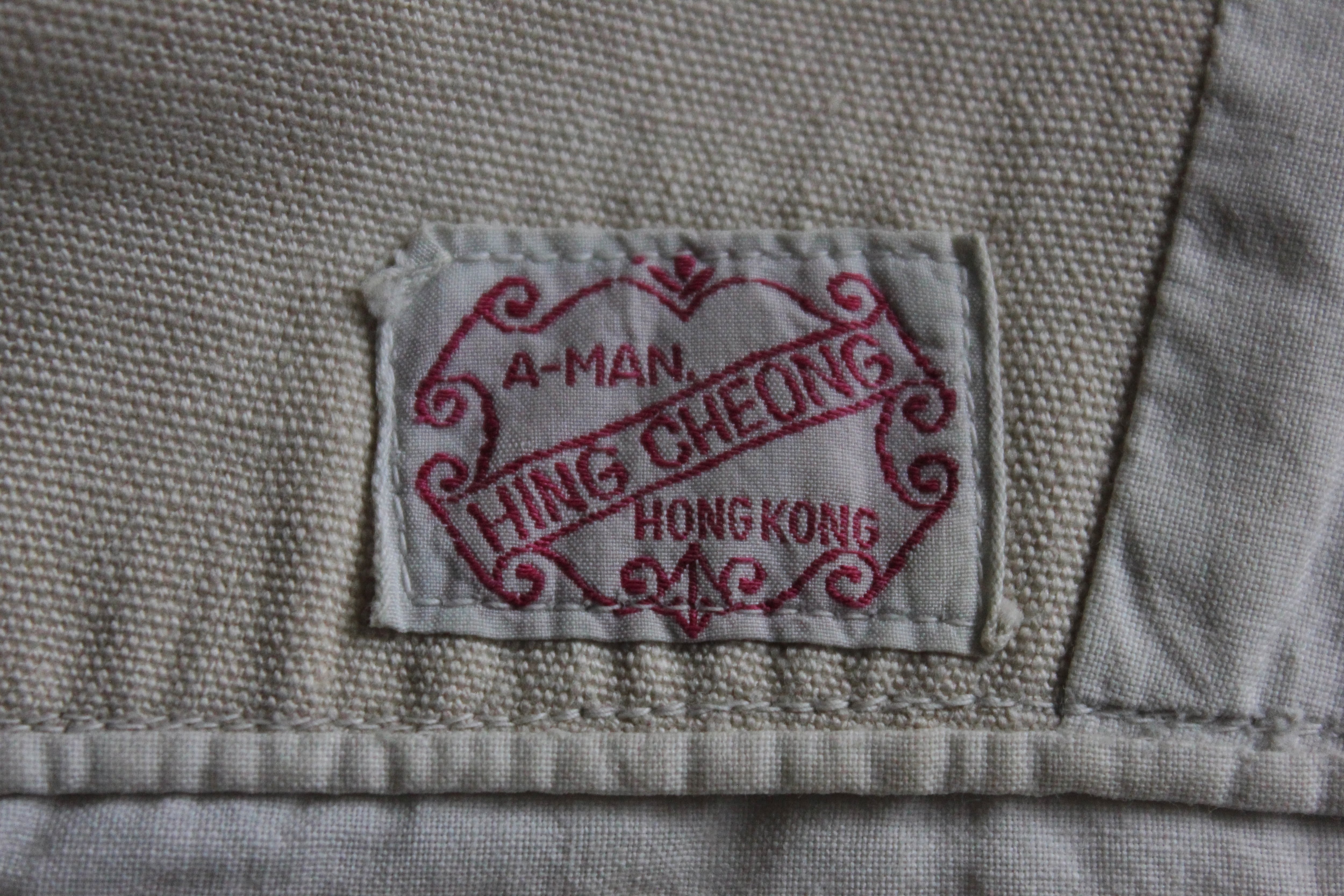 当時の香港はイギリス領であり、欧米の富裕層や軍関係者のために軽量なトロピカルウェアを仕立てる拠点として栄えていました。本品もその流れに位置づけられるであろう一枚です。