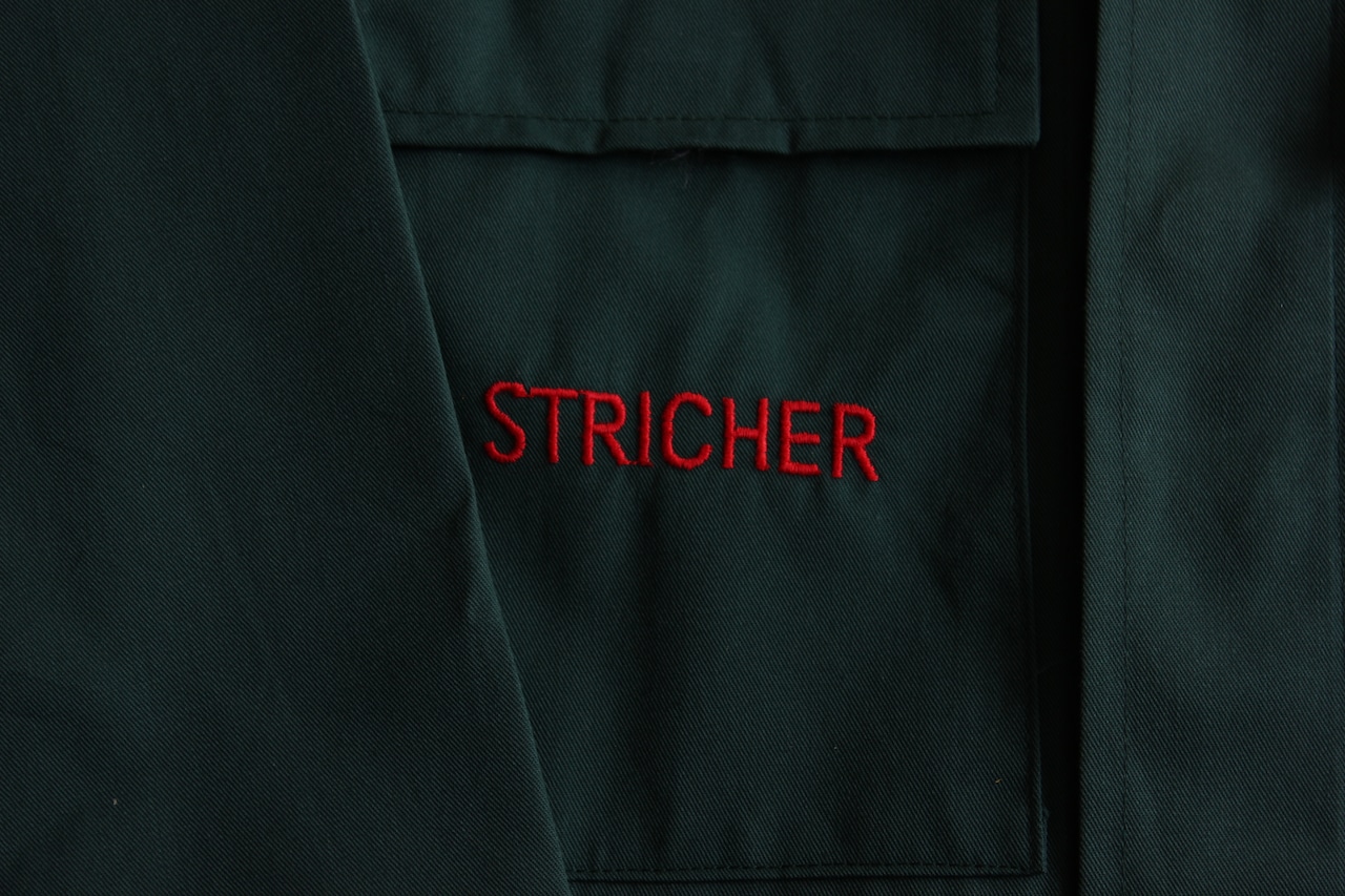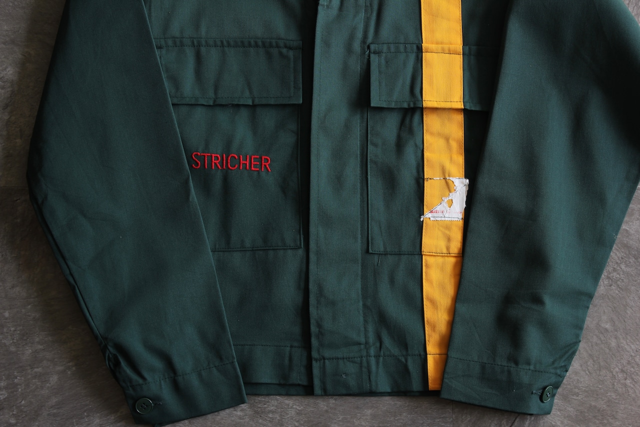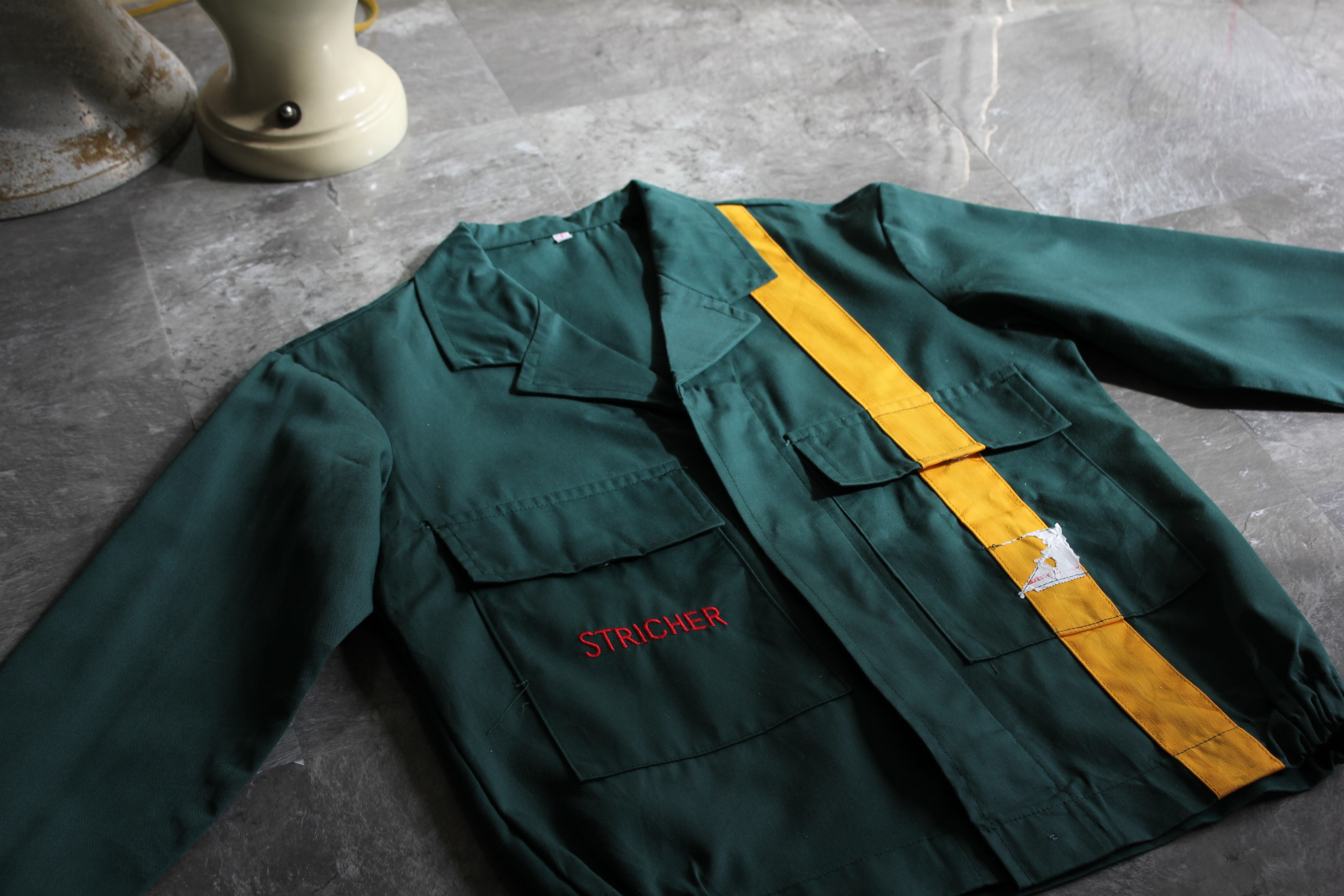 ドイツ語のスラング刺繍があしらわれた、一風変わったワークジャケット。