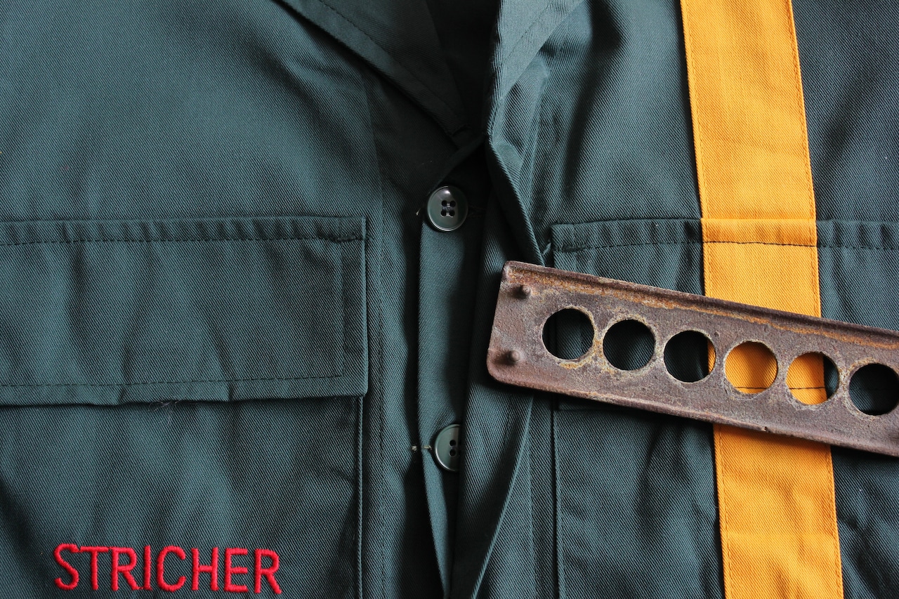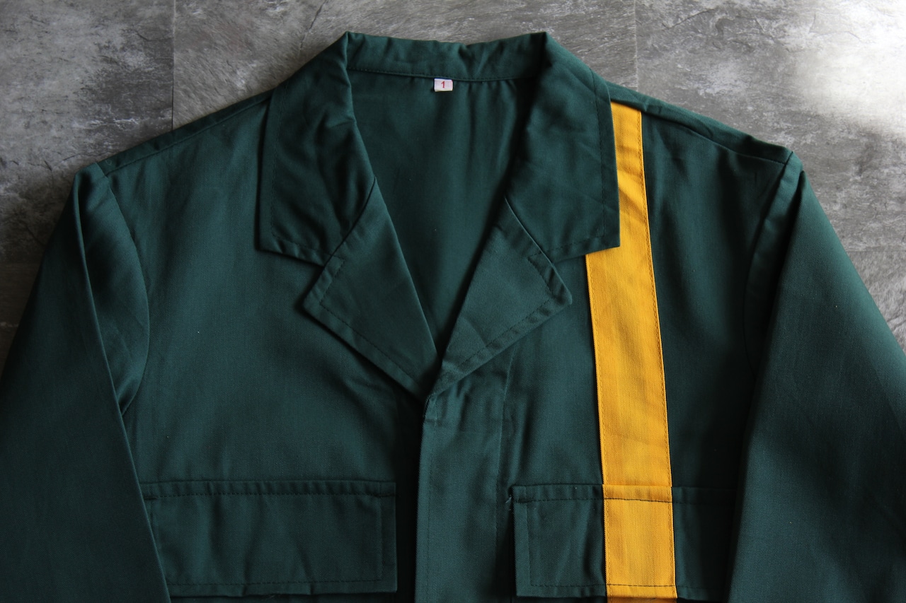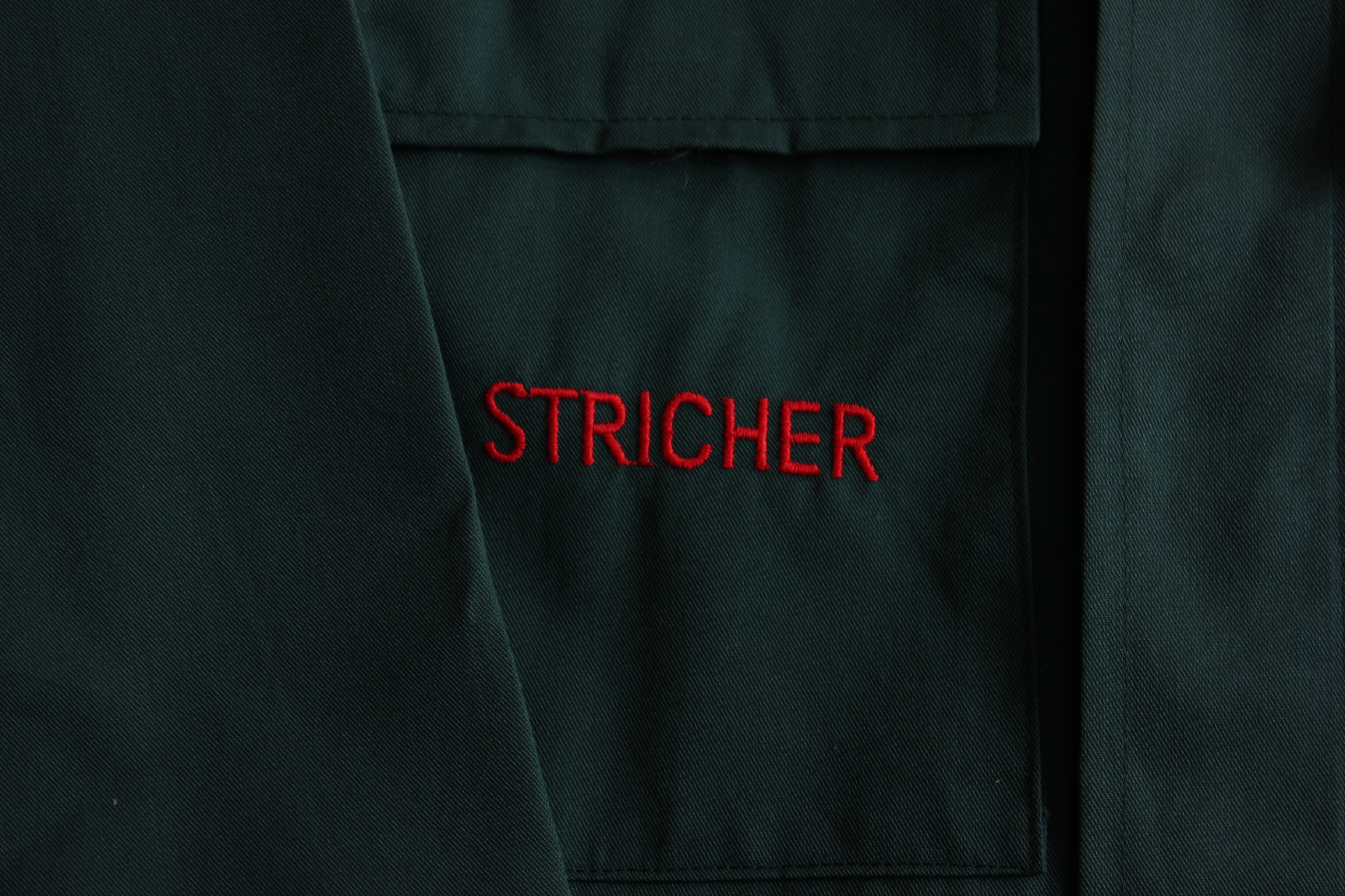 ドイツ語のスラング刺繍があしらわれた、一風変わったワークジャケット。