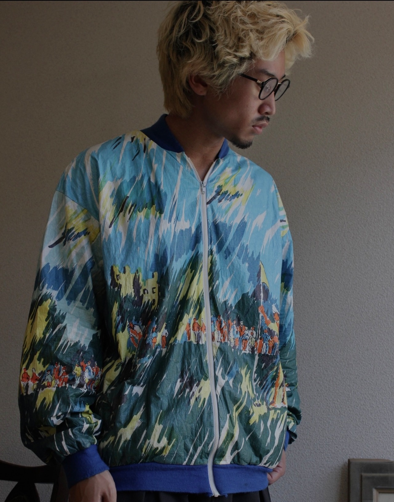 ゴルフをモチーフにデザインされたペーパージャケット。抽象柄でアートピースな一枚。