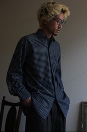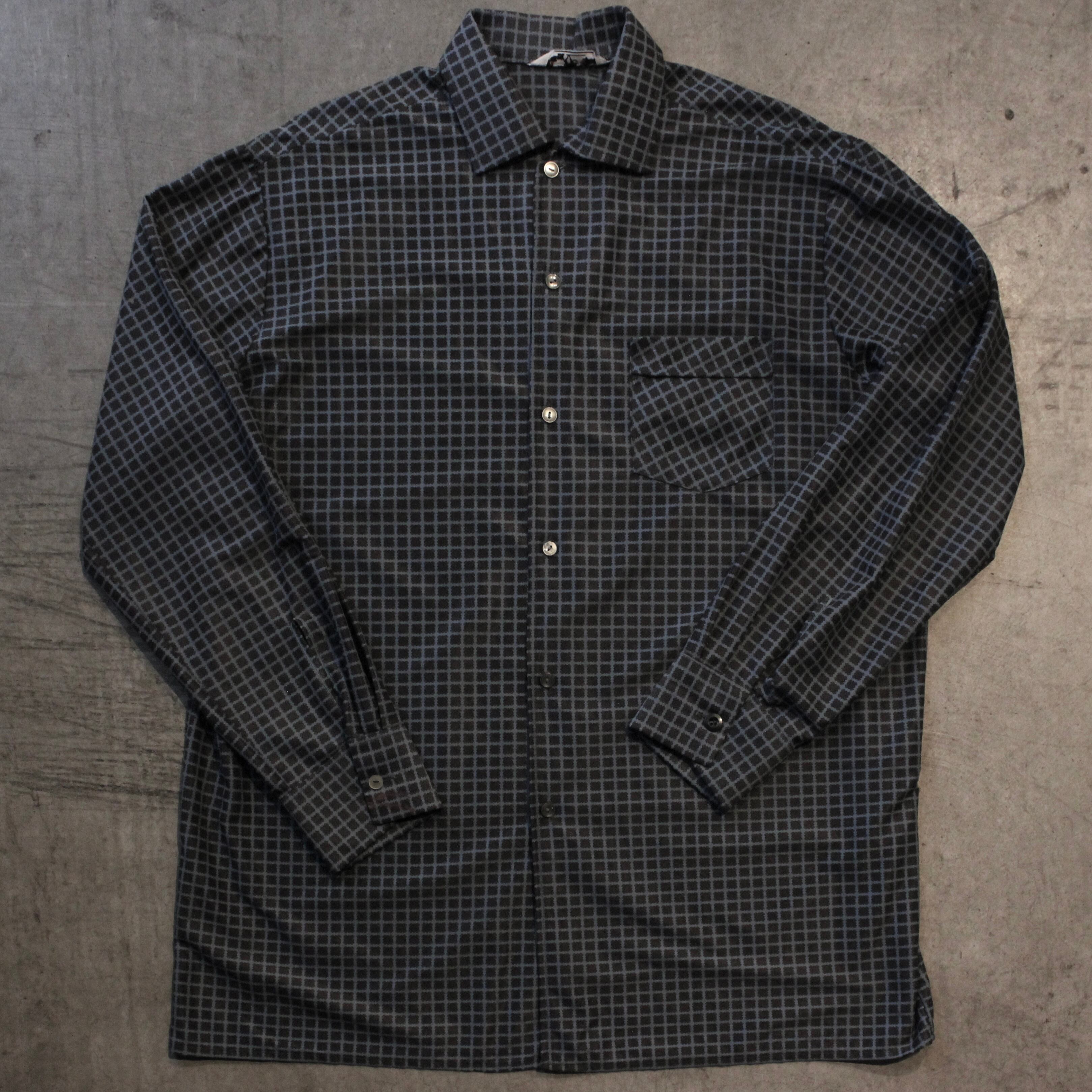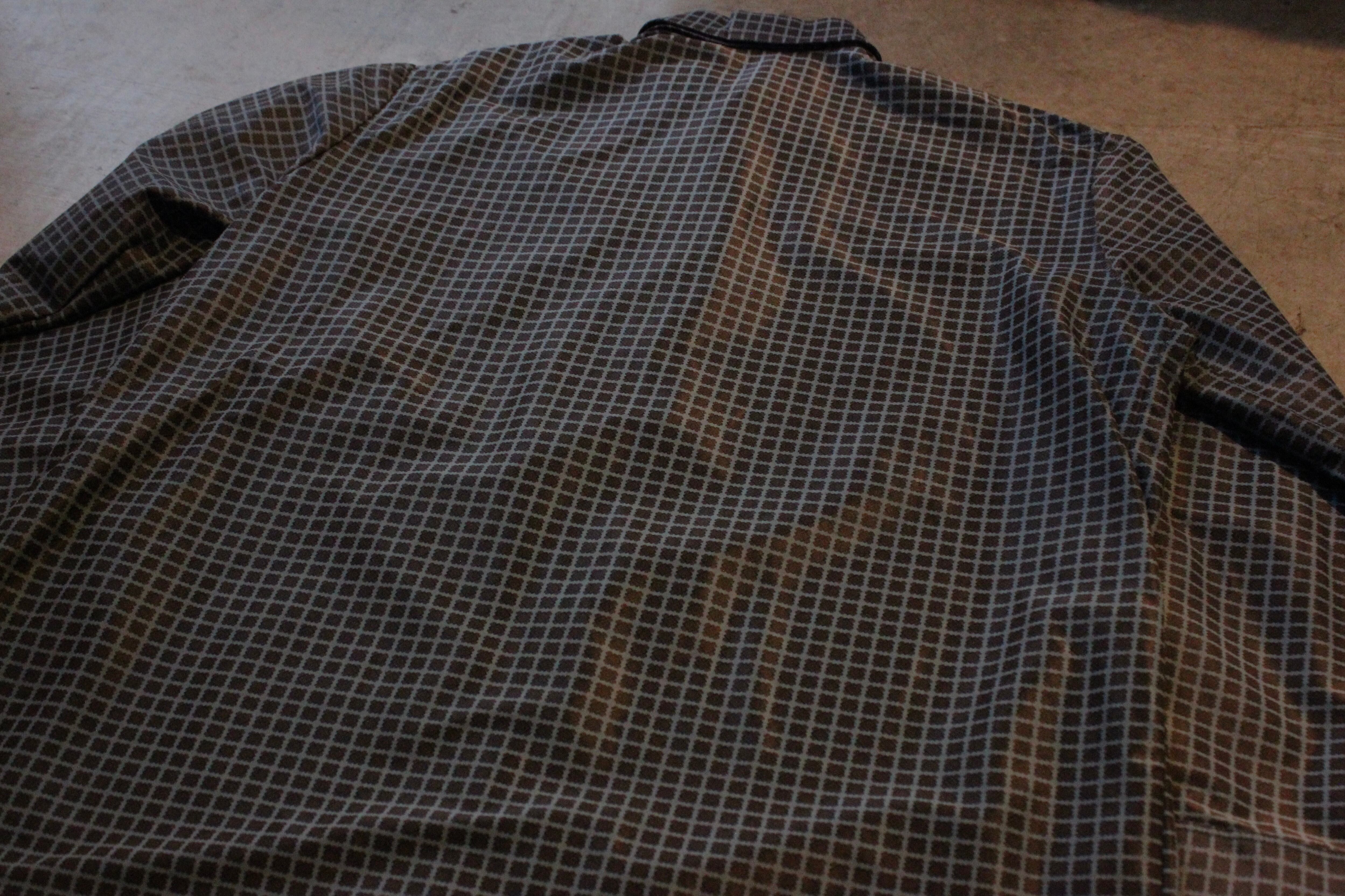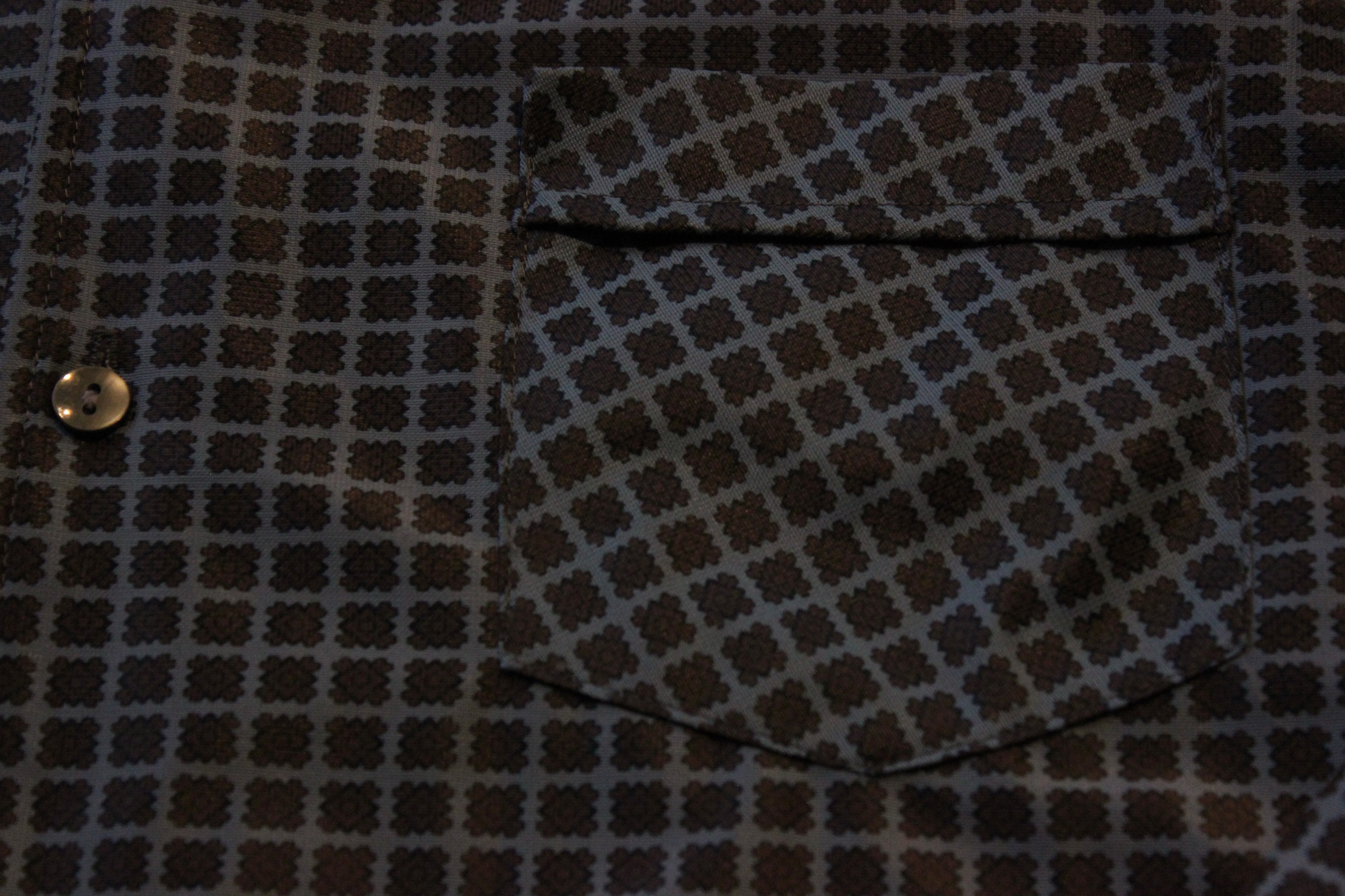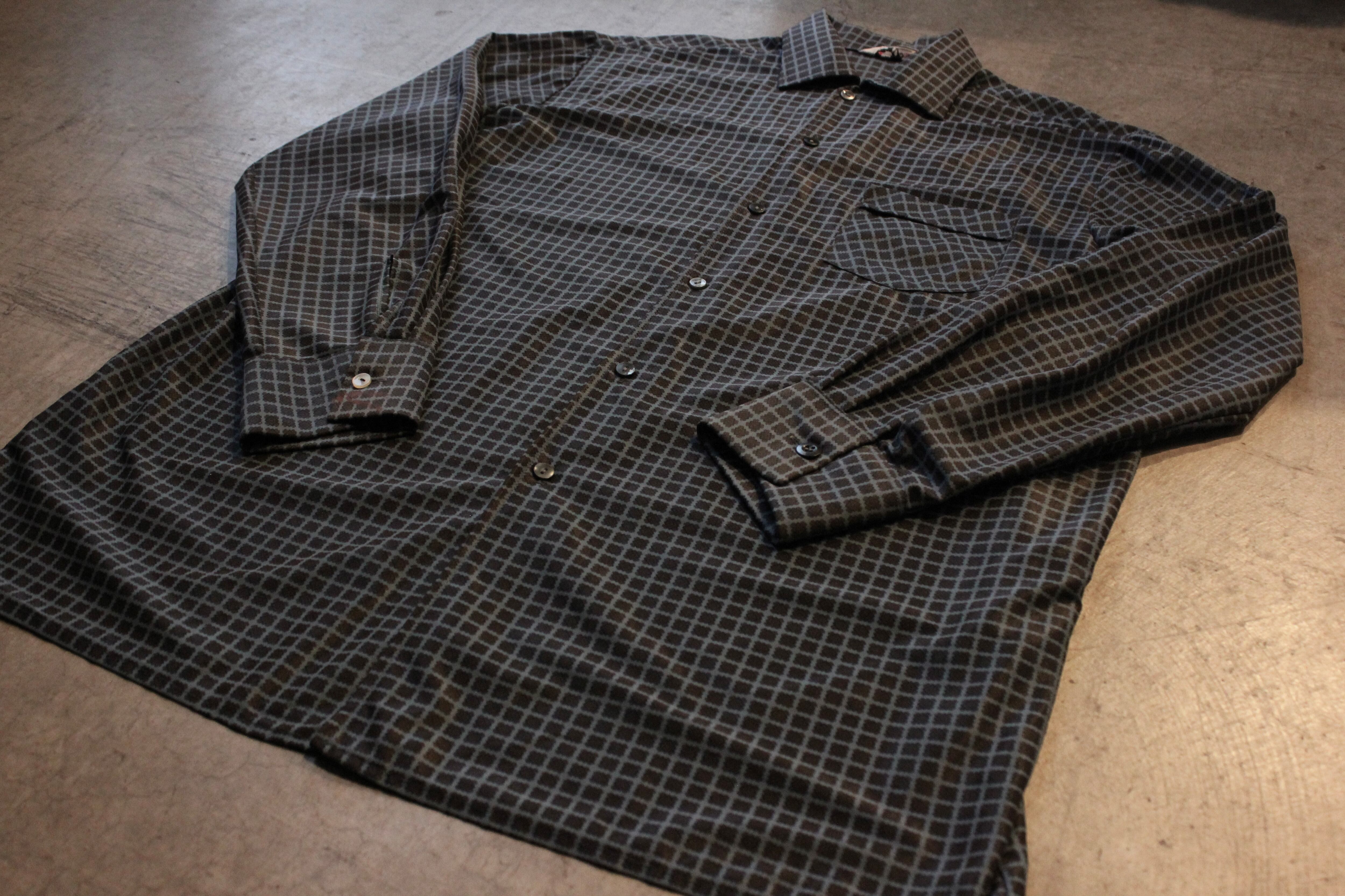 軽い生地に、立体感のある幾何学模様を織り込んだ一枚。パジャマシャツらしさもあります。