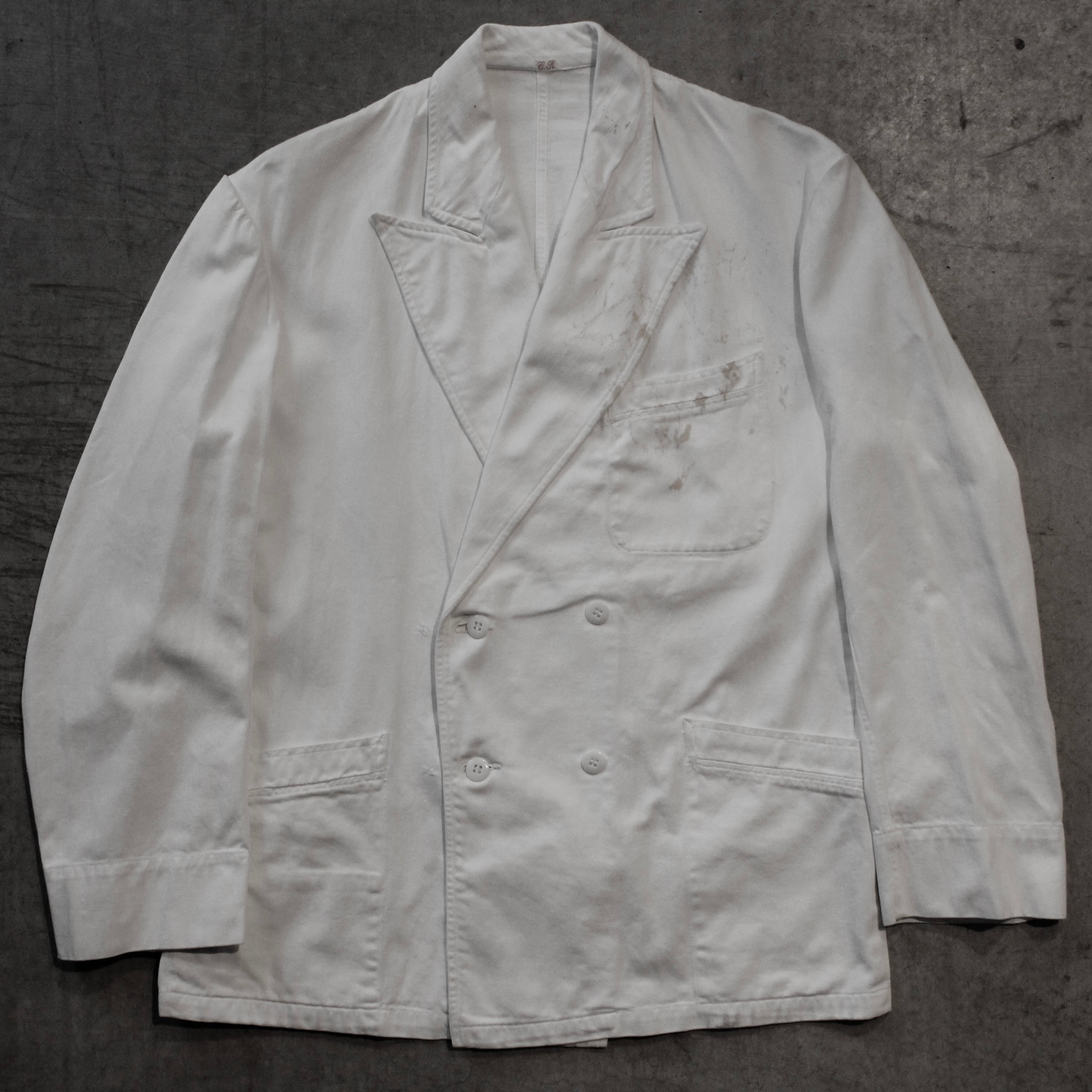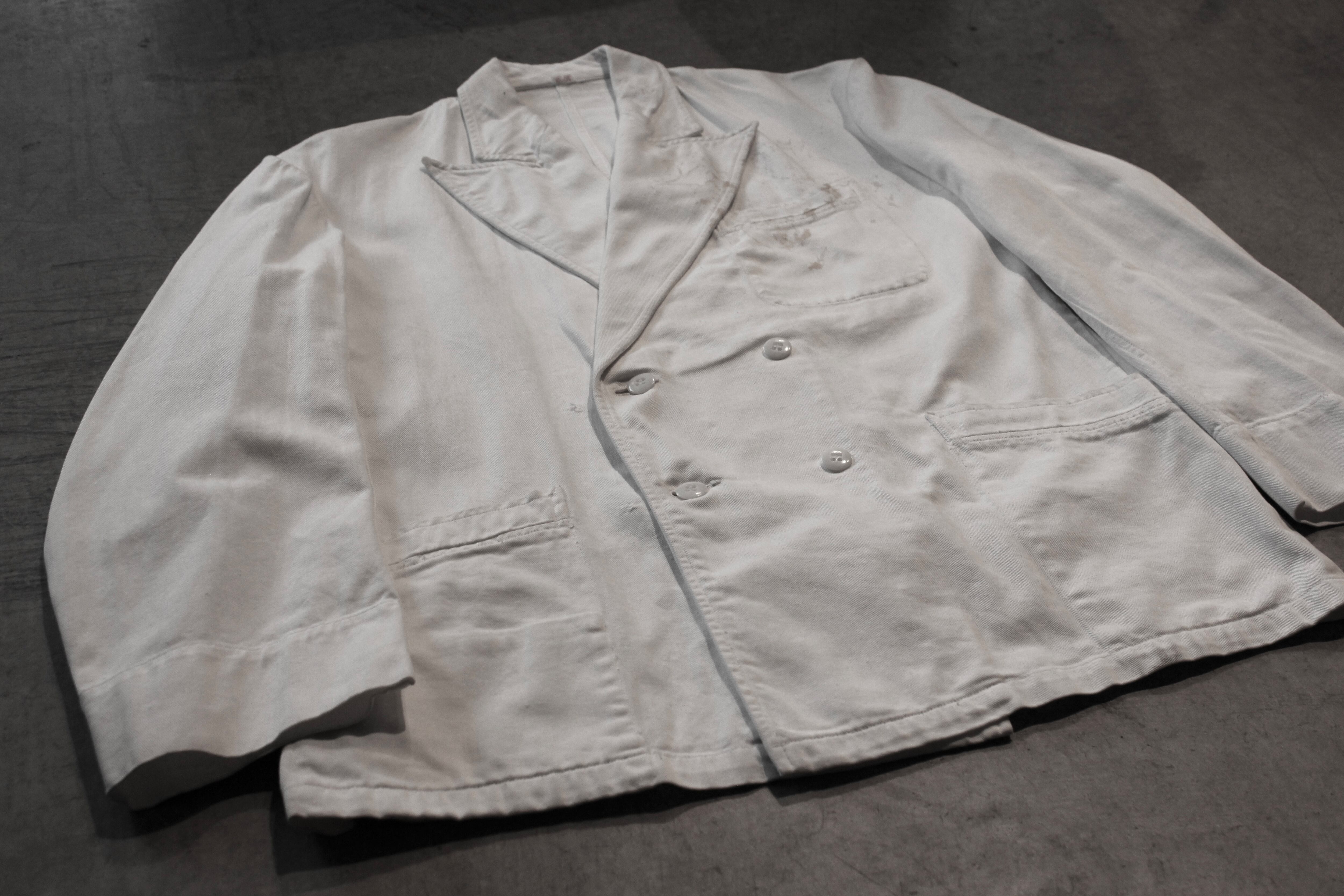 厚手のコットンツイル地にダブルブレストテーラード仕様、