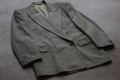 オリーブベージュのダブルブレストジャケット。