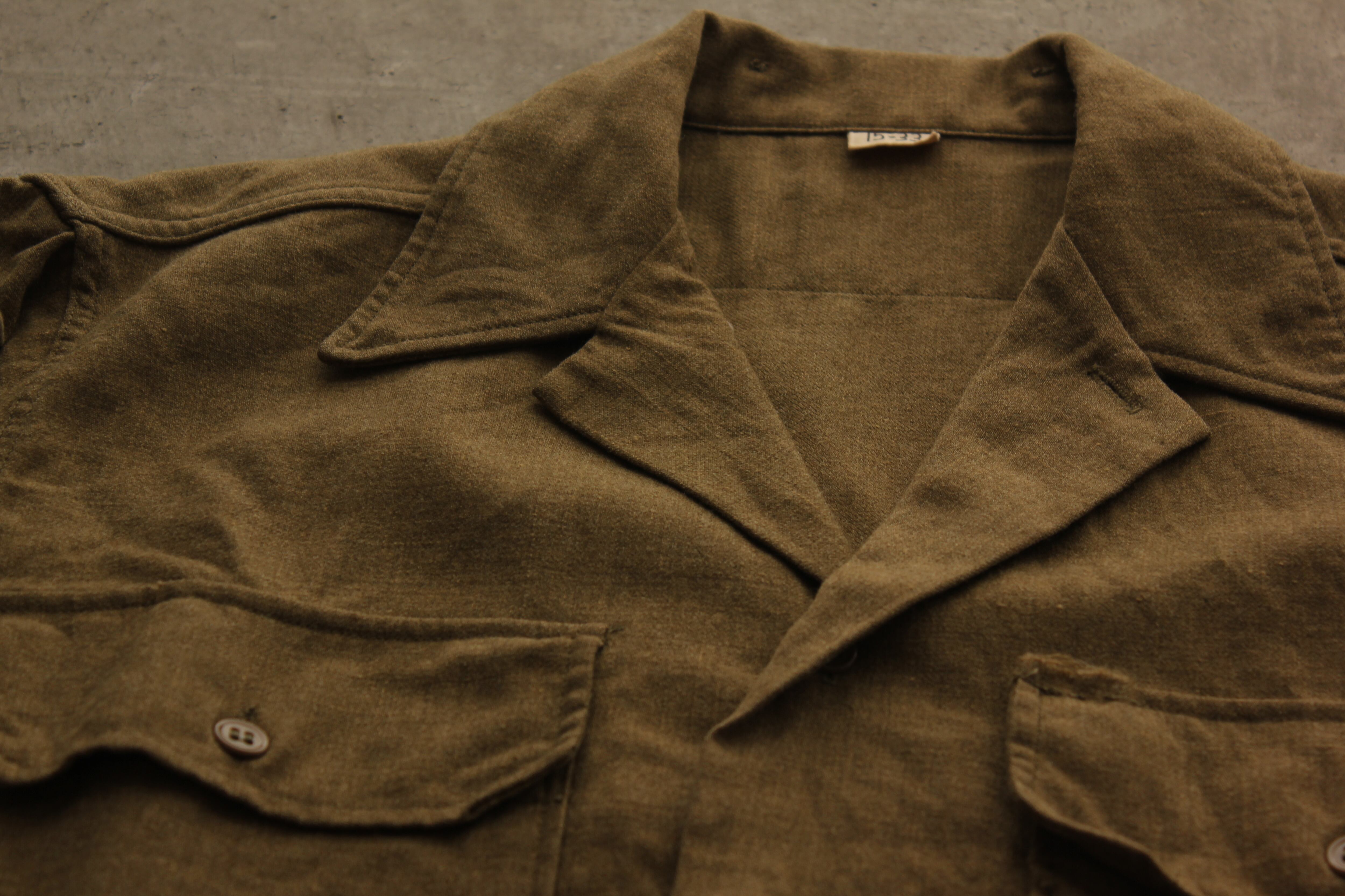 オープンカラーにフラップポケット、裾マチ付きというクラシックなディテール。