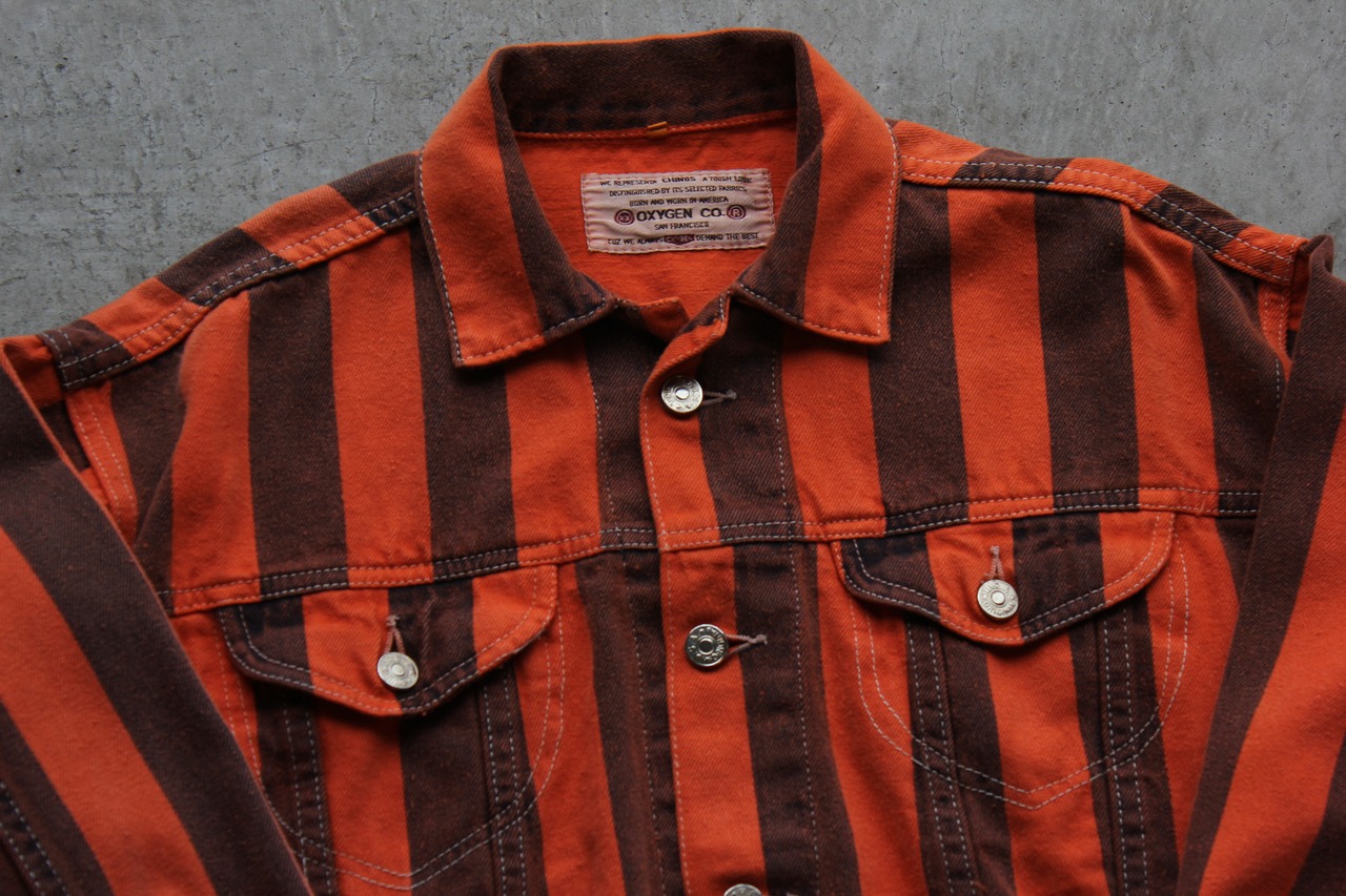 サンフランシスコ発のブランドOXYGEN CO.による、80年代頃のストライプデニムジャケット。