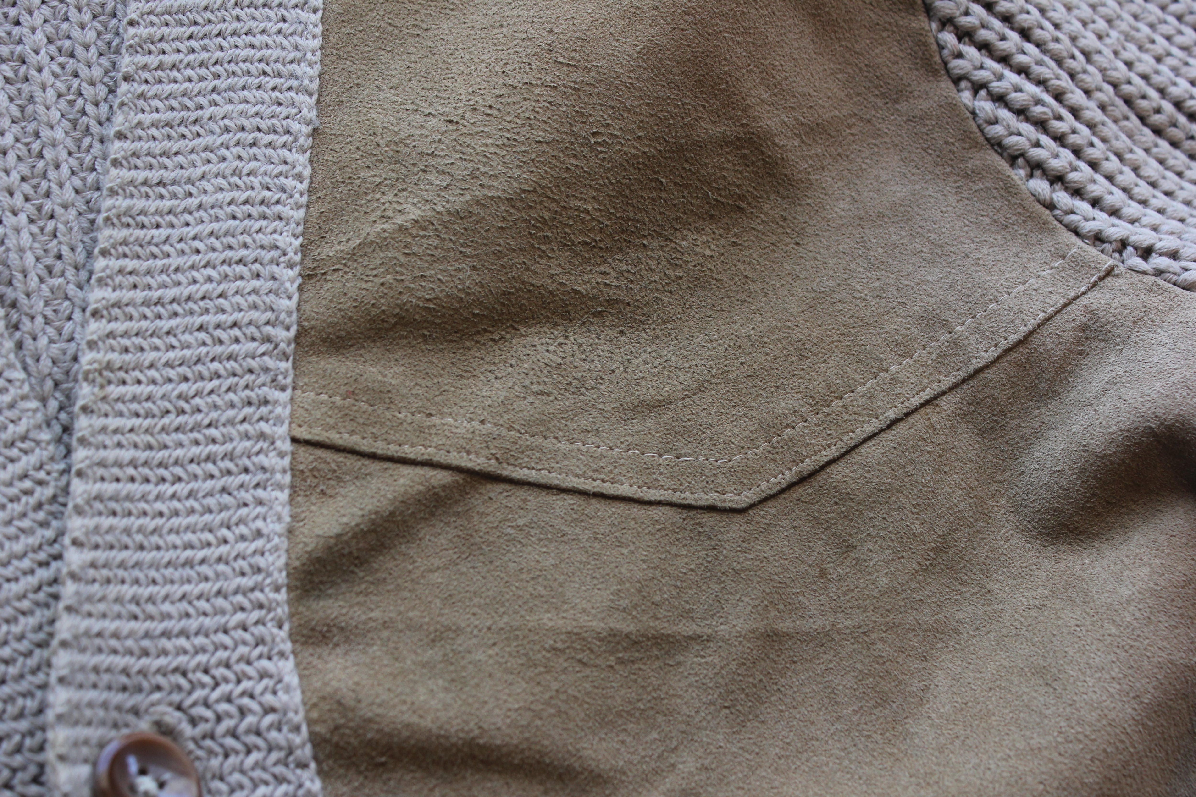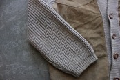 スエードとローゲージニットを組み合わせたカーディガン。