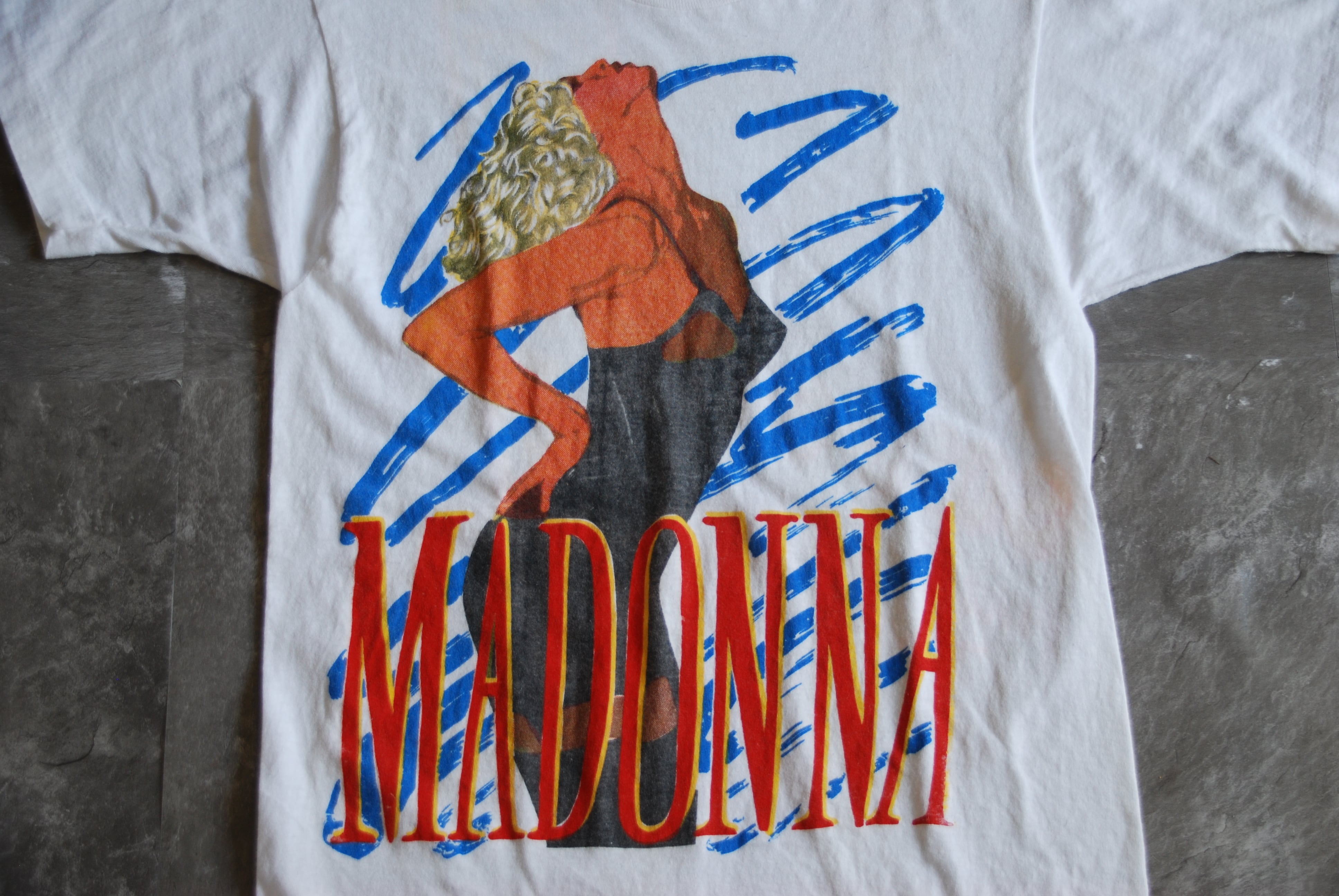 クイーンオブポップとも称されるアメリカのシンガーソングライター、マドンナのツアーTシャツでの一枚。