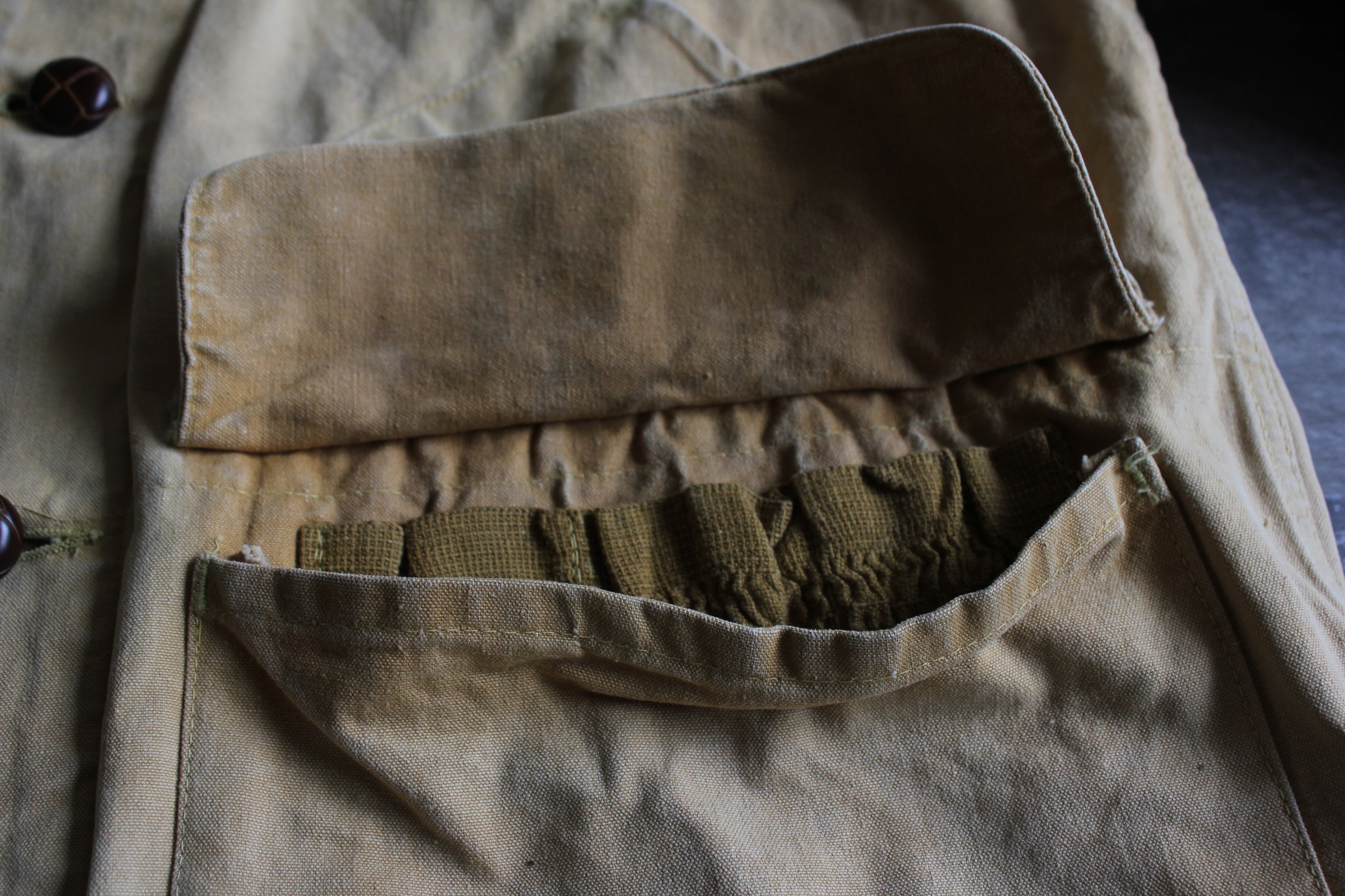 機能性が重視されたアイテムとして服のつくり、ディテールなどからして見てもわかりやすいハンティングジャケット、ヴィンテージアイテムとして、非常に面白い一着かと。